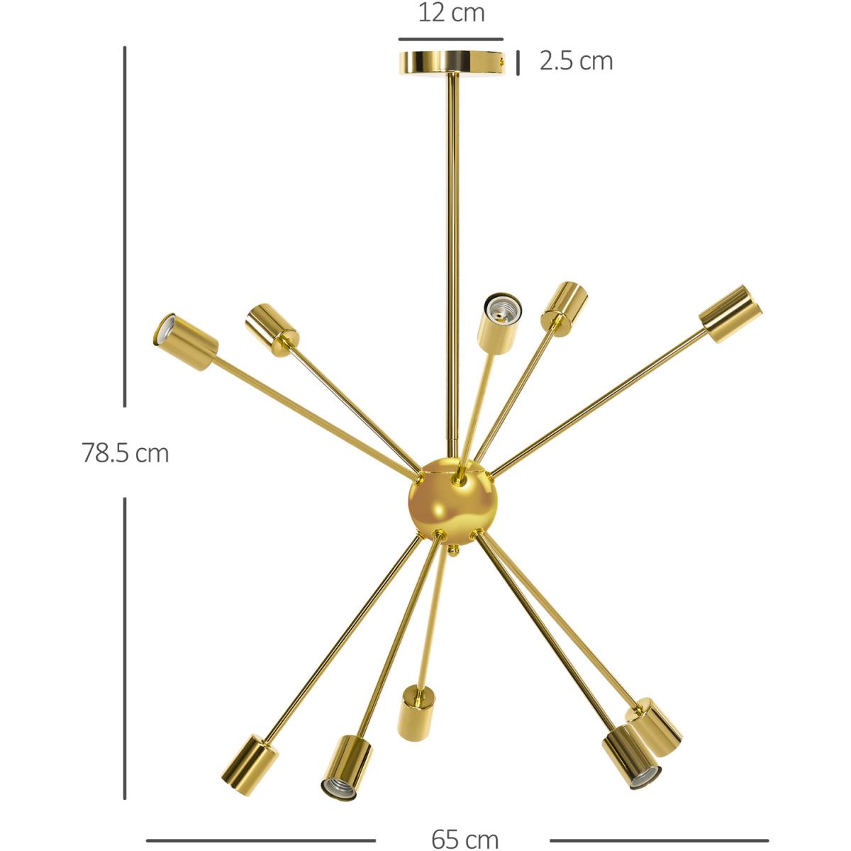 10-Light Modern Sputnik Chandelier Ceiling Lights Fixture for Bedroom - Gold Tone