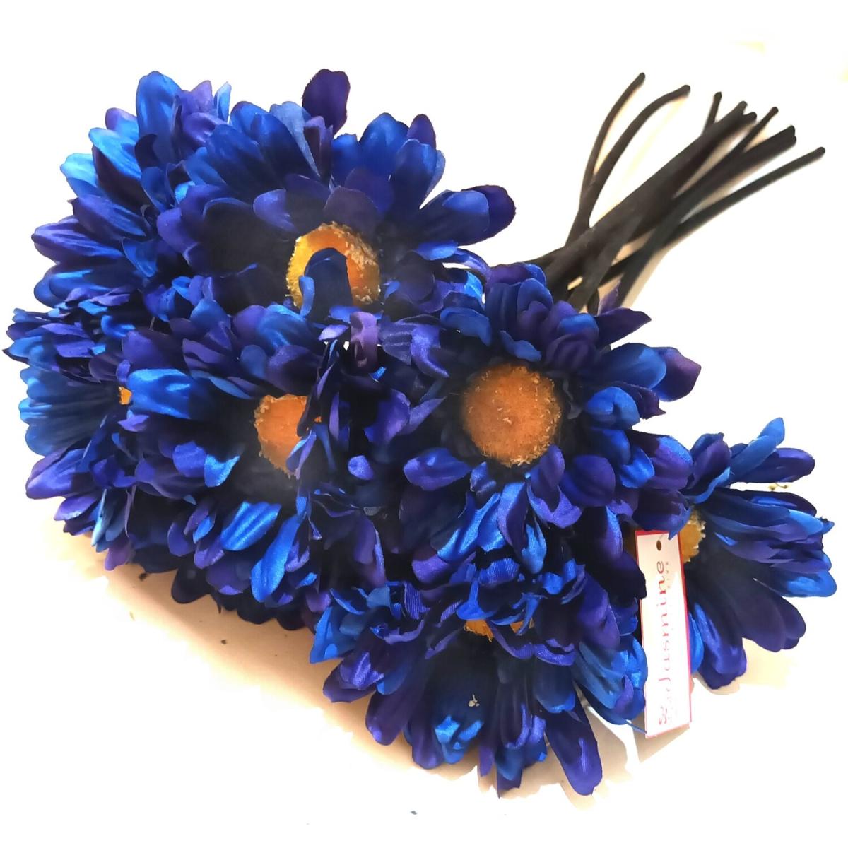 10 Pack Artificial Blue Gerbera Flower Stems - Blue