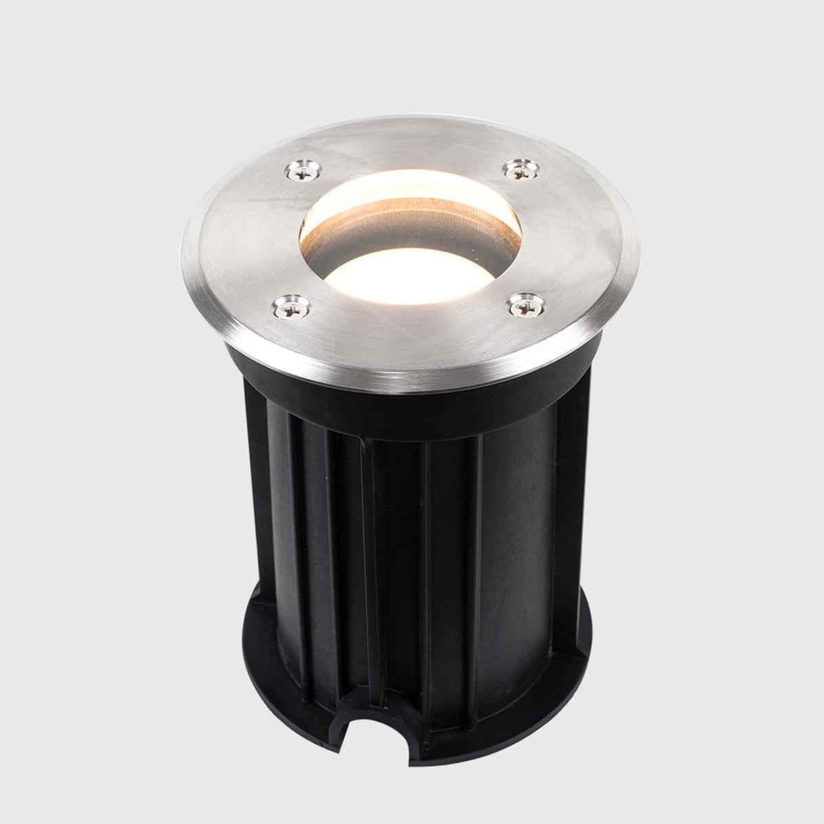 Modern walkover outdoor lights in a brushed chrome finish. These ground lights are designed to lighten up and decorate your garden, they can be used to illuminate a focal point in your garden and or provide lighting to a walkway. These fixtures are waterproof (IP54 Rated) making them a great solution for outdoor lighting. Includes a 300mm cable.