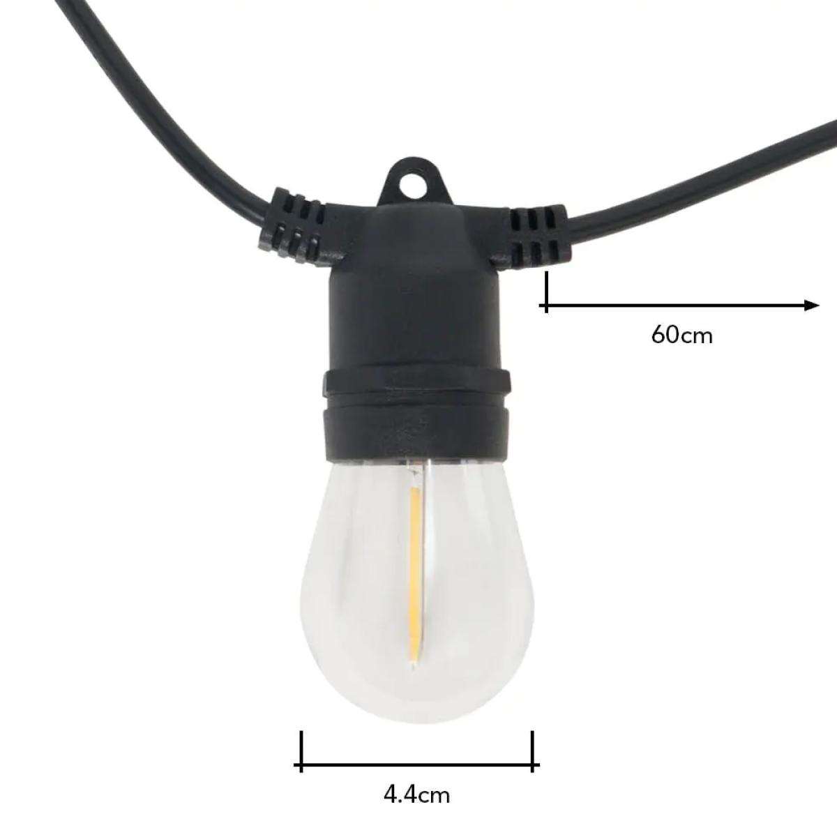 The 10 Pack of Burke Outdoor Solar Festoon Lights are ideal for adding a calm and relaxed ambience to an outdoor area. The stylish yet simplistic design and the black finish allow them to blend and look amazing anywhere. The 10-metre cord means these are suitable for larger spaces. While the 10 festoon light holders are spread out evenly across the wire ensuring that you get an even spread of light across your space. The solar power of these lights means that once fitted these lights work solely off the sun ensuring you don't have any additional electricity costs.