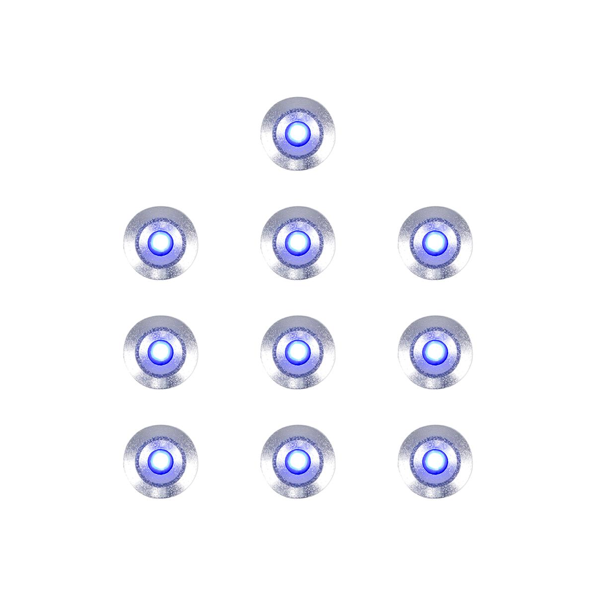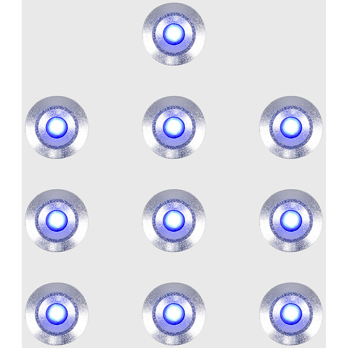 Complete Stainless Steel Decking Plinth Lights Kit. Includes all bulbs, cables, and connections. Update your garden with these fantastic lights. These blue LED's light up your decking beautifully. IP67 outdoor rating. This kit contains 10 x 15mm LED decking lights (1m of cable between each light). Mains indoor transformer. 5m cable from transformer to first light.