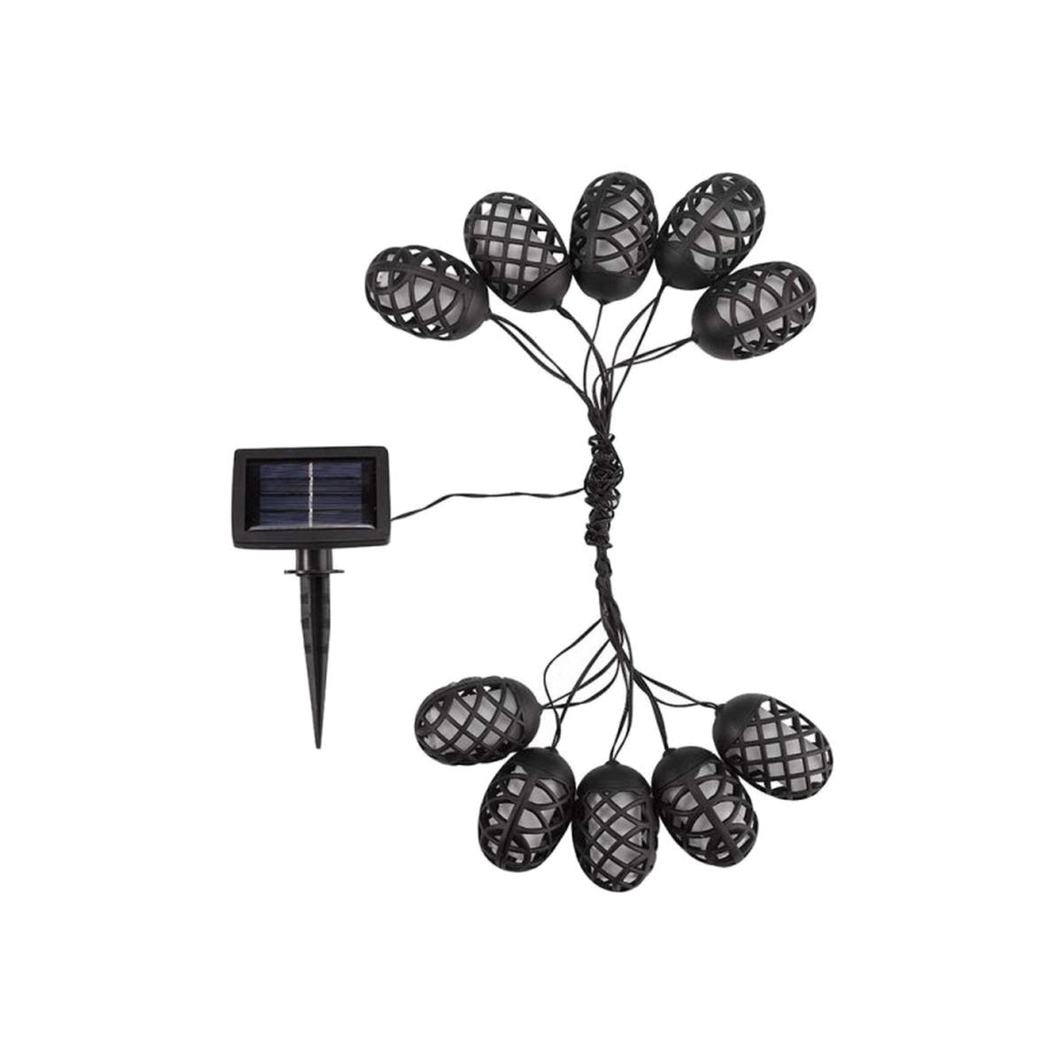 These 10-flaming lantern bulb solar string lights are available in orange LEDs charging during the day and automatically illuminating at dusk, brightening up trees, arches, doorways, trellises, or fences. Cable Length - 4.7m Weatherproof 10 Piece Flame Effect Solar String Lights - Black