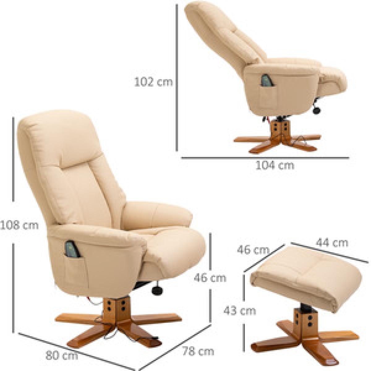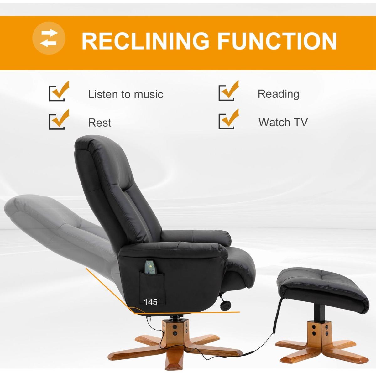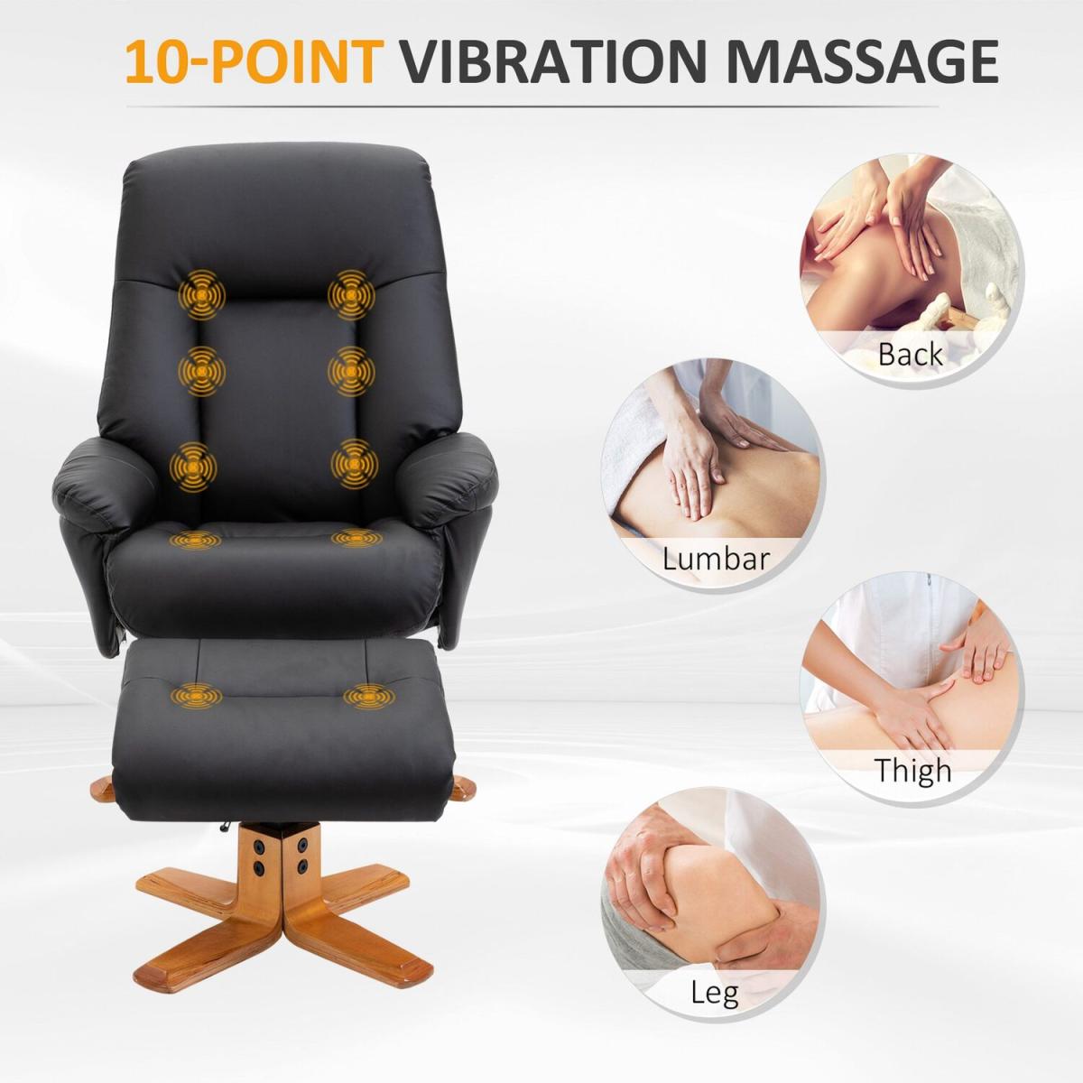 Thickly padded all over, with a reclining back allows you to sink in and lean back. For even more comfort, there are five massage modes over two intensity levels pulsating, pressing, waving, auto and normal, spread over ten massage points (six on the back, two on the thigh and two on the leg) to give you plenty of control on how you want your experience. It's attached on a 360 degrees swivel base to move from side to side easily. Comes with a matching ottoman footstool.