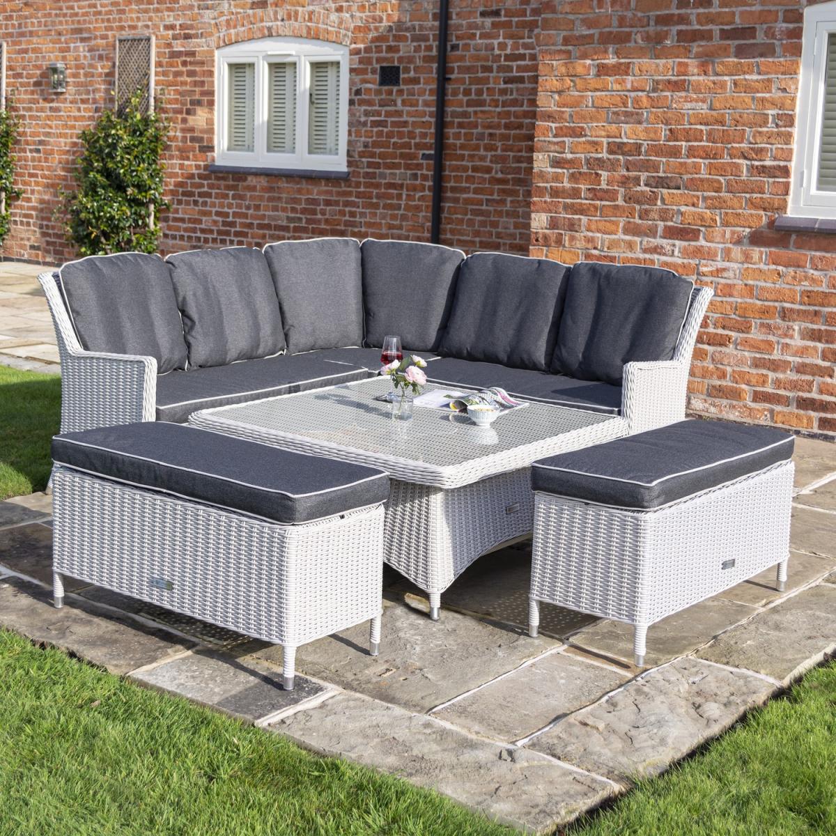 I love this outdoor set for its versatile light grey rattan finish, which complements both modern and traditional garden spaces. It works particularly well in contemporary settings or as a neutral piece in more eclectic schemes. Styling tips include adding colourful cushions for comfort and visual interest, or layering with outdoor rugs to define the dining area. Because of its neutral tone, it pairs effortlessly with a range of decking or patio materials, and its sizeable seating makes it perfect for family gatherings or entertaining guests. To keep it looking its best, consider a weatherproof cover during the winter months.