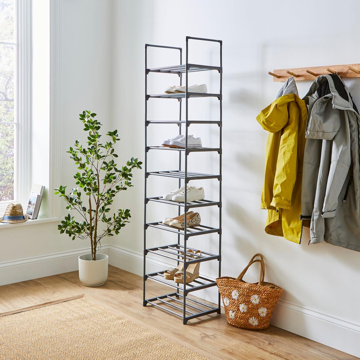 * Can hold up to 40 pairs of shoes (dependent on size and style of footwear)* Made from durable, sturdy plastic and steel* Easy to assemble and disassemble* Suitable for compact spaces* Available in two colourways This sleek and functional shoe rack is designed to hold up to 40 pairs of shoes, accommodating various sizes and styles. Crafted from durable and sturdy plastic combined with robust steel, this rack ensures longevity and reliability. Assembling and disassembling is a breeze, making it a practical choice for those who value convenience. Ideal for compact spaces such as closets, entryways or bedrooms, our shoe rack maximises storage without compromising on aesthetics. Choose from two stylish colourways to complement your home decor seamlessly.