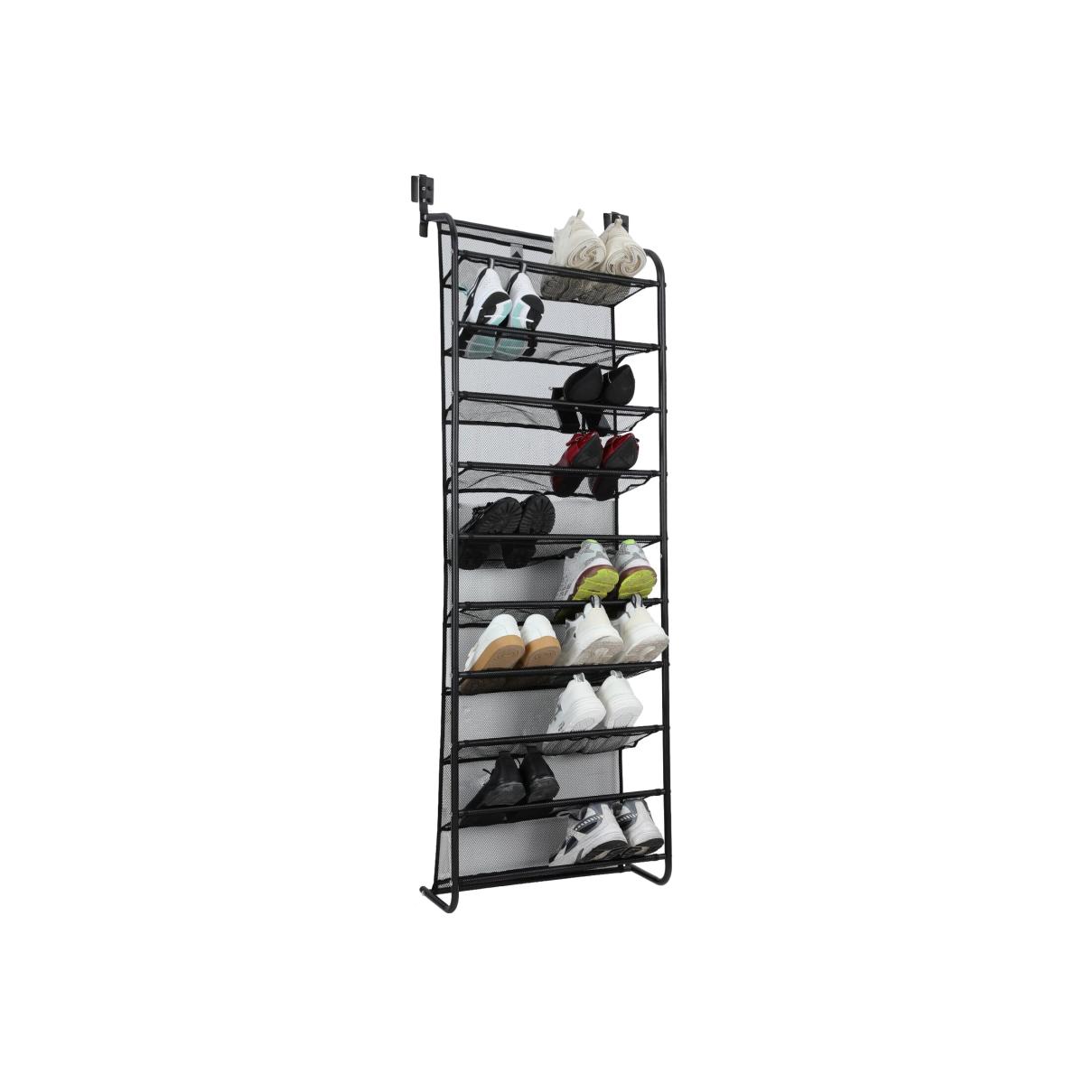 10 Tiers Behind Door Shoe Organiser 20 Pairs Shoe Rack Space Saving - Black