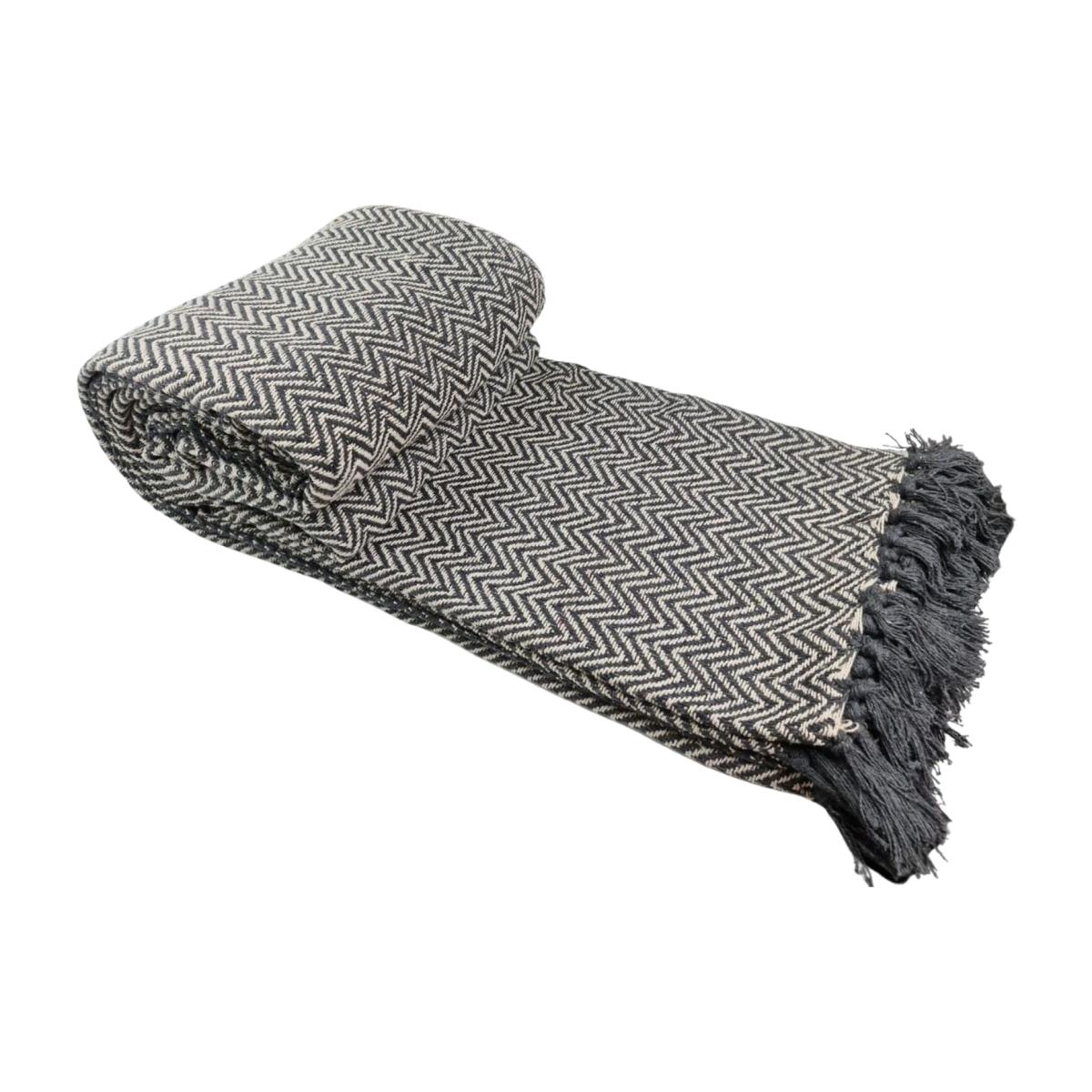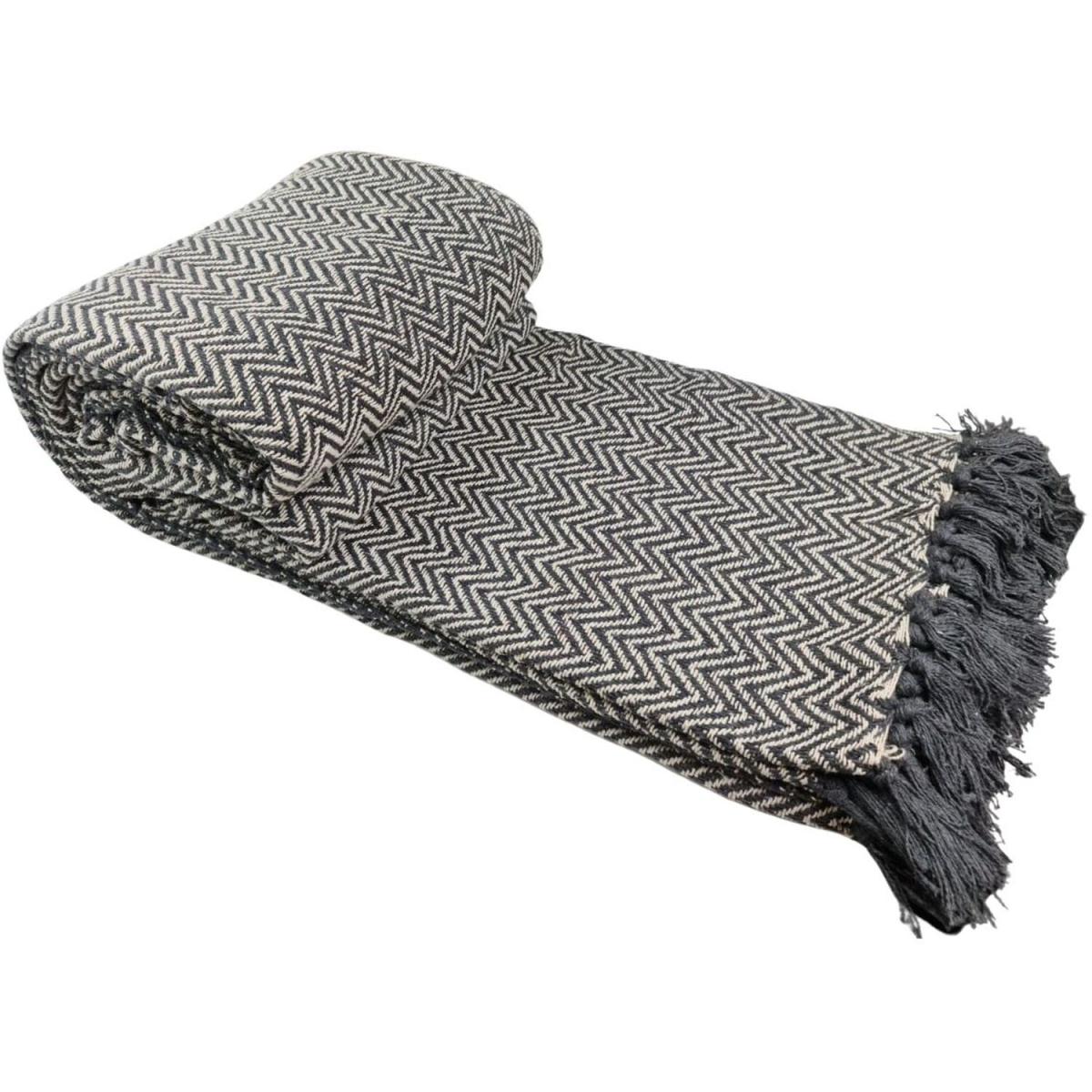 100% Cotton Charcoal-Natural Chevron Bed/Sofa Throw Over - Charcoal