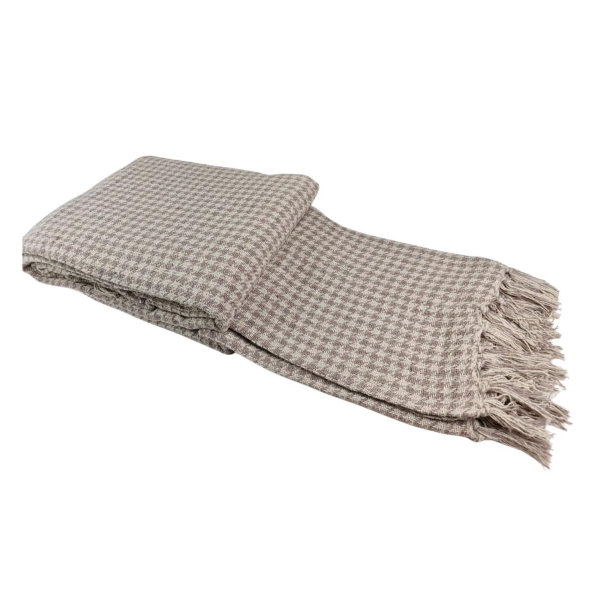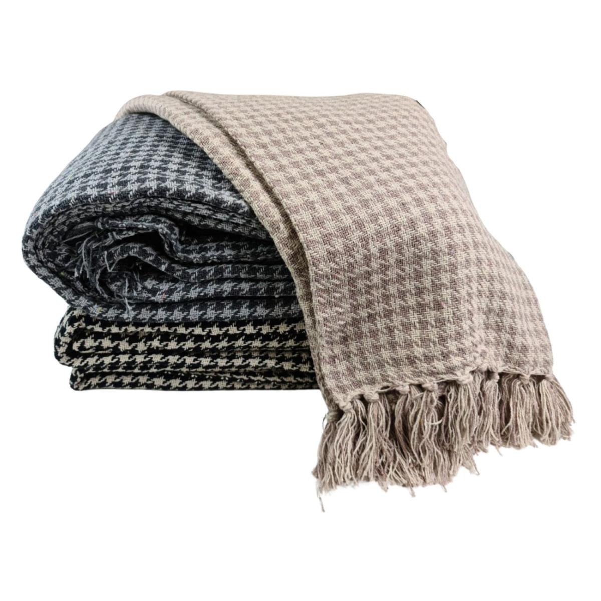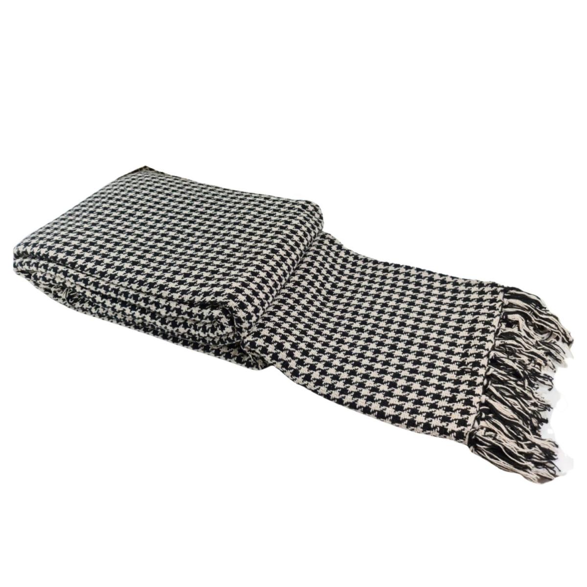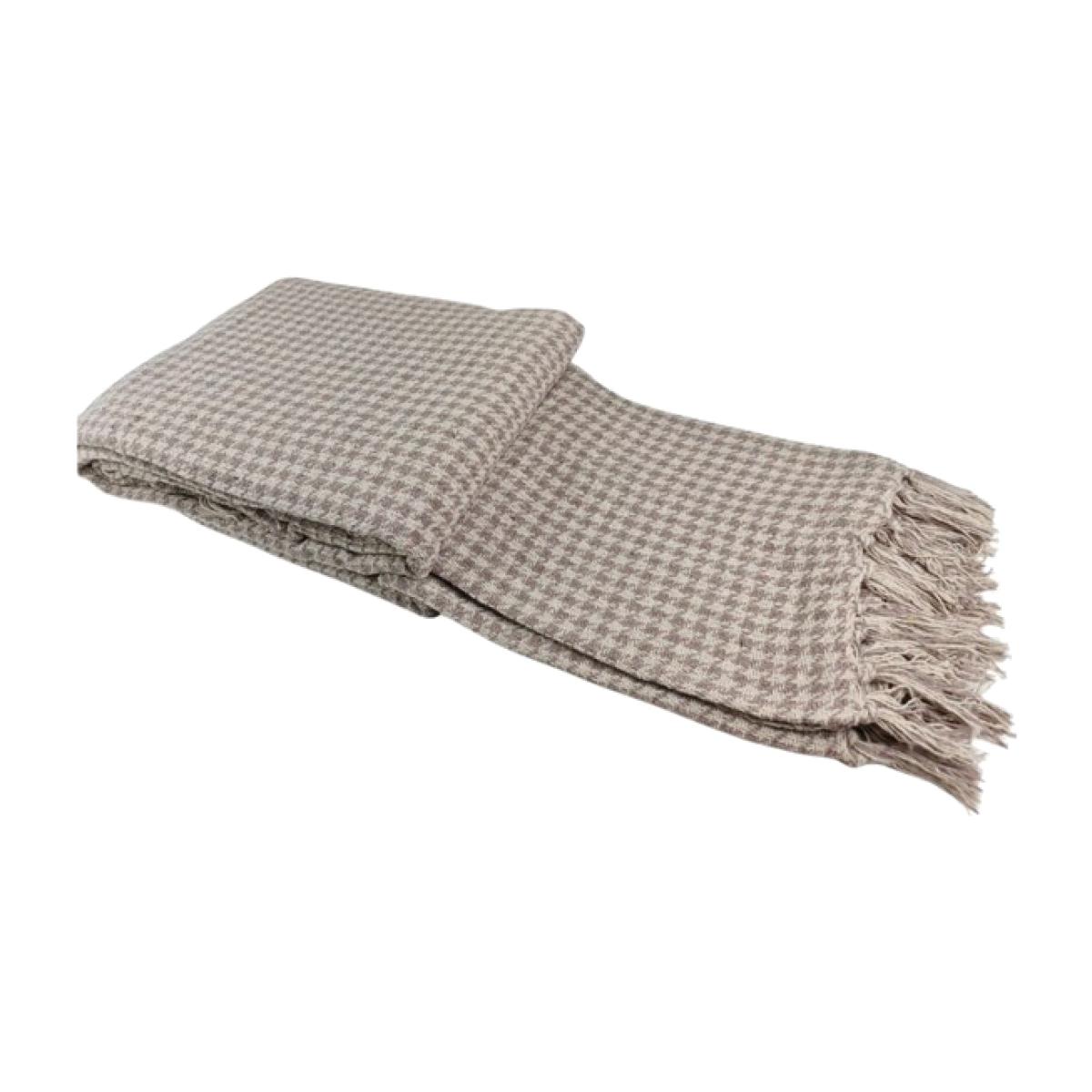 100% Cotton Houndstooth Bed -Sofa Throw Over 178cm x 254cm - Natural