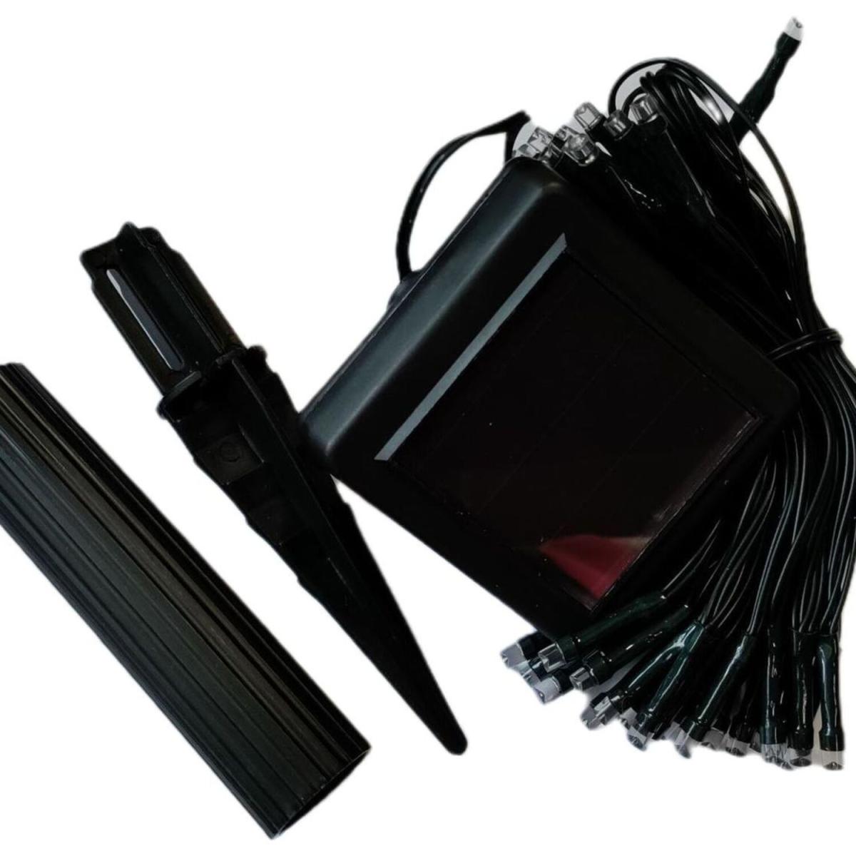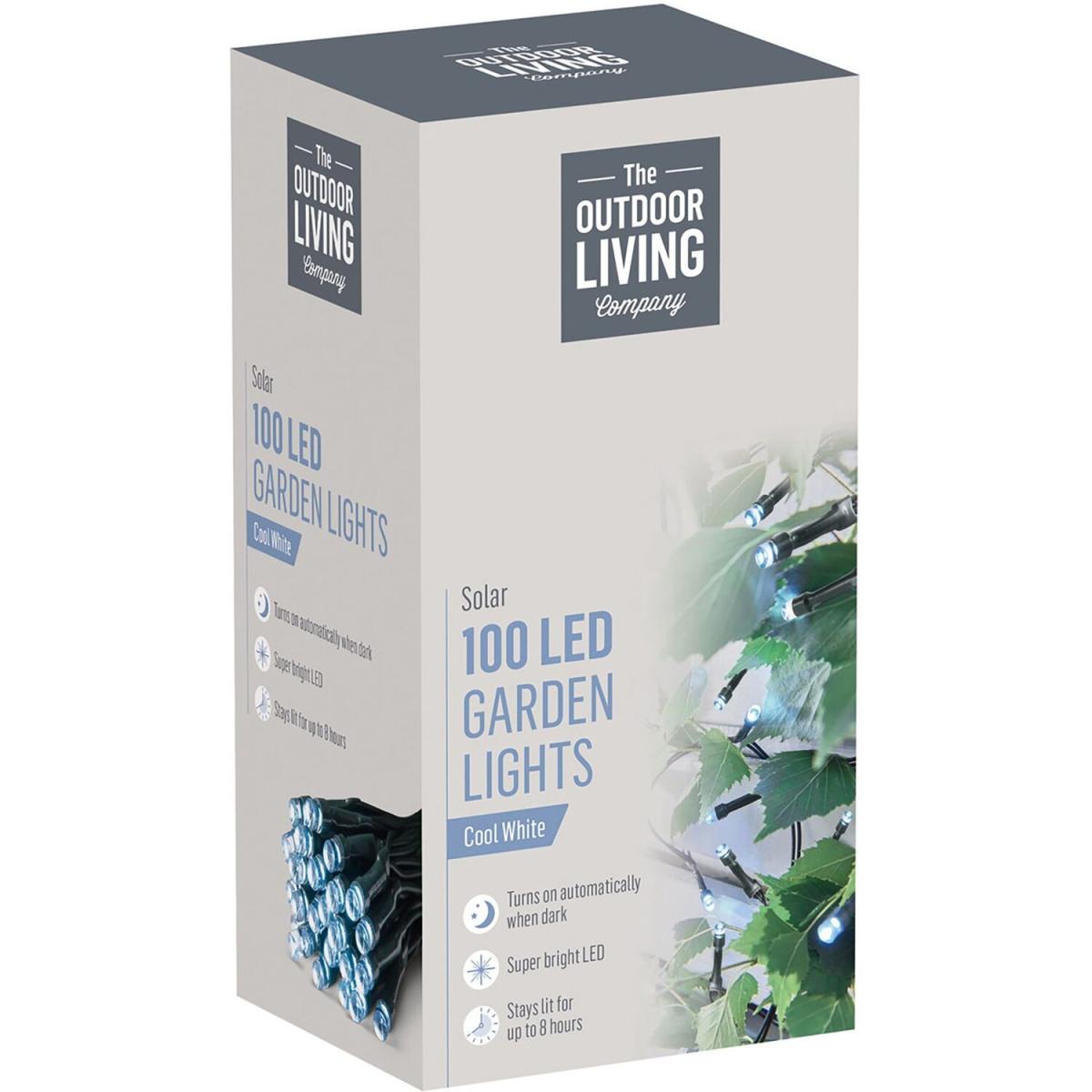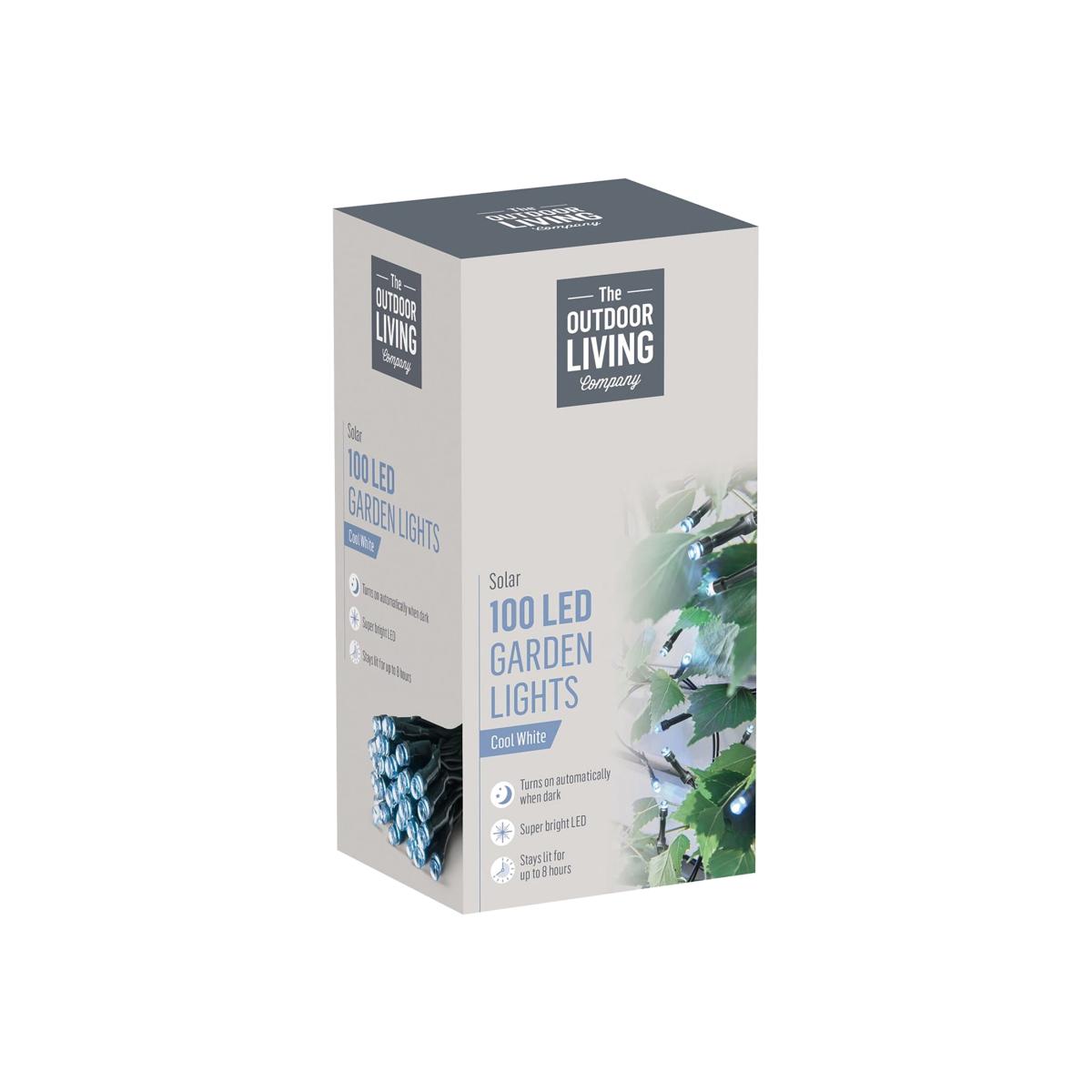 This set of 100 LED string lights are set out on a green cable which helps to blend them well into your garden and outdoor area. With their solar powered function and static setting, once charged will light up automatically for up 8 hours once dusk arrives. Giving off a cool bright white light to brighten up your garden. The lights have a generous 9.9m lit length range and a 2m lead cable from the solar charging panel, allowing you to place them in and around your garden or patio area. The solar charging panel requires 1 x AAA rechargeable battery which is included with the lights. These eco friendly LED lights are the perfect addition to lighting up your outdoor space and creating a welcoming atmosphere for all your friends and family to enjoy.