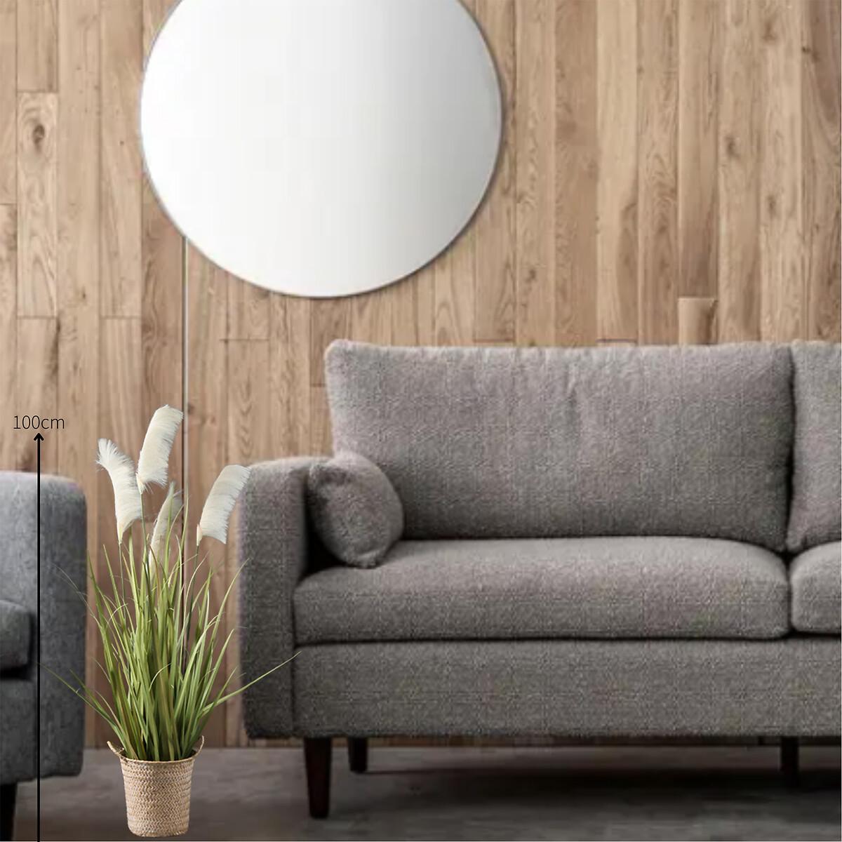 I love this faux pampas grass in its natural basket for adding texture and a contemporary touch to a variety of interiors. It's particularly effective in boho, Scandi, or minimalist schemes, where natural elements help soften a space. Its neutral tones make it versatile enough to sit comfortably in both living rooms and bedrooms, whether placed on a side table, mantelpiece, or as a statement floor arrangement. For styling tips, consider grouping it with other natural fibres or metallic accents for visual interest, or position it near a bright window to highlight its realistic, airy appearance. It’s a low-maintenance way to bring a bit of the outdoors inside without the fuss of fresh flowers.