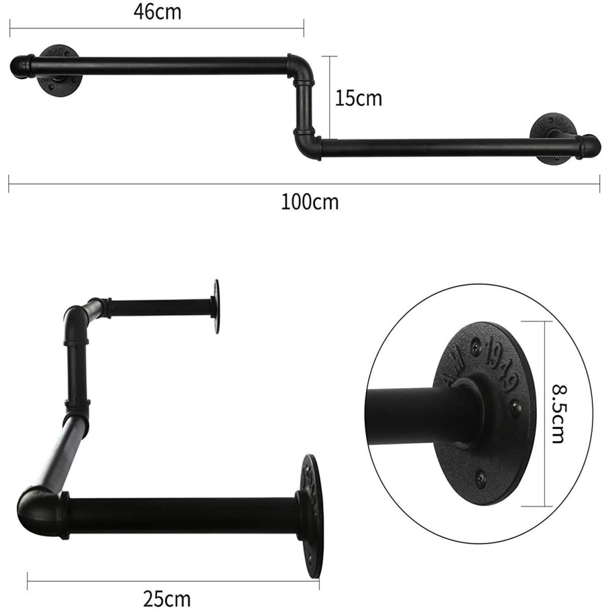 Constructed of realistic vintage-style pipe and fittings, this wall-mounted garment hanging rack provides storage for a large selection of clothing. Adds extra hanging space for clothing retail store, cloth boutique, home, workroom, or dance room. Perfect for laundry room, hallway, entryway, bedroom, closet or balcony. Compared to the ordinary garment rack, over-the-door rack or closet rack, with the industrial pipe hanging clothes rack, you can custom the height where to install it for your family to reach easily.