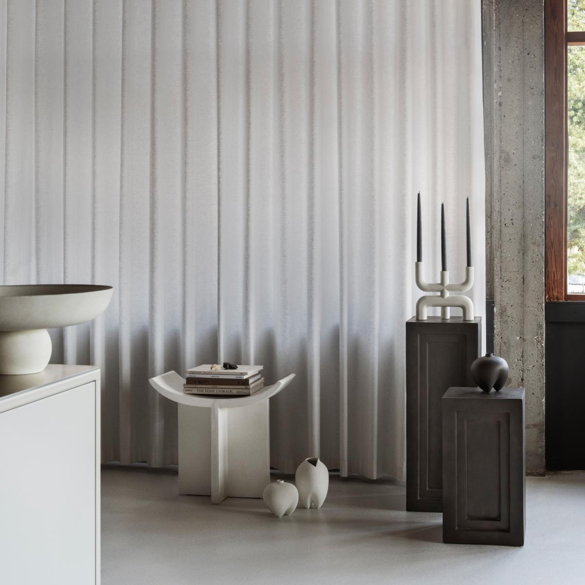 The Brutus stool in bone white is a versatile piece that adds a contemporary edge to various interiors. I love its sculptural shape and neutral tone, which make it adaptable from modern minimalist spaces to more eclectic schemes. It works particularly well as a statement side or accent piece, or even as a small coffee table in a living room. For styling tips, consider pairing it with natural textures like timber or linen to soften its bold form, or place a statement lamp or decorative objects on top for visual interest. Its sturdy build and understated colour make it both functional and effortlessly stylish, suitable for both casual and more refined environments.