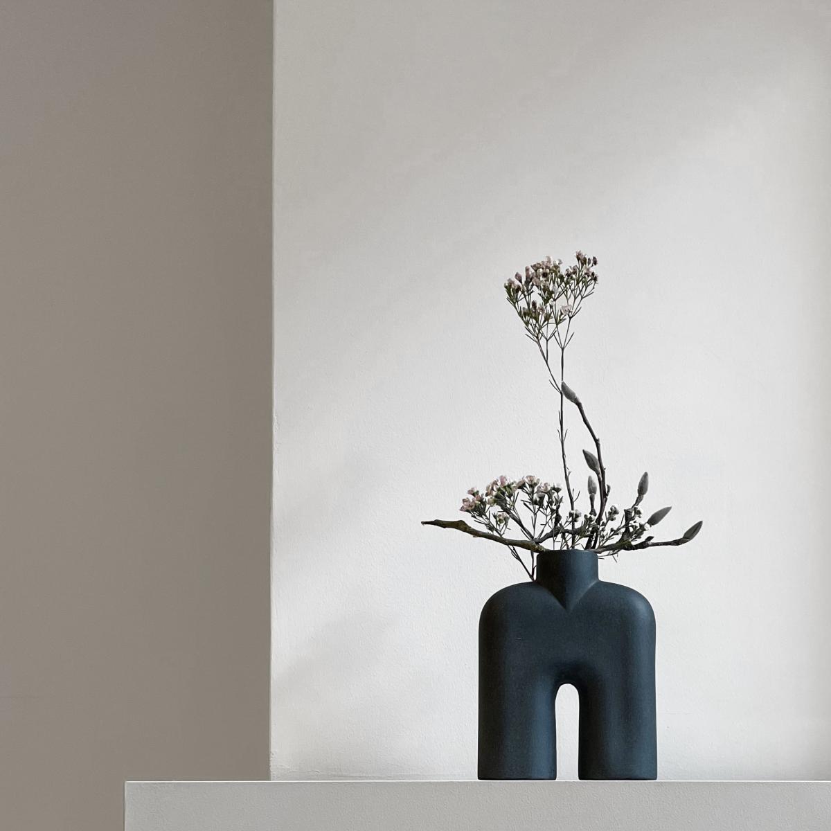 I love this tall mini vase for its modern, sculptural design and matte black finish - it’s a versatile piece that adds contemporary edge to many interiors. It works particularly well in minimalist or Scandinavian schemes, where its clean lines can be showcased with simple wild or single-stem bouquets. For styling tips, try pairing it with dried botanicals or textured grasses for a contrast in material that elevates its understated aesthetic. Due to its bold shape, it can stand alone as a statement piece or be grouped with other ceramics for a curated look. Its height makes it ideal for placement on mantels, consoles, or open shelves where it can be appreciated from multiple angles.