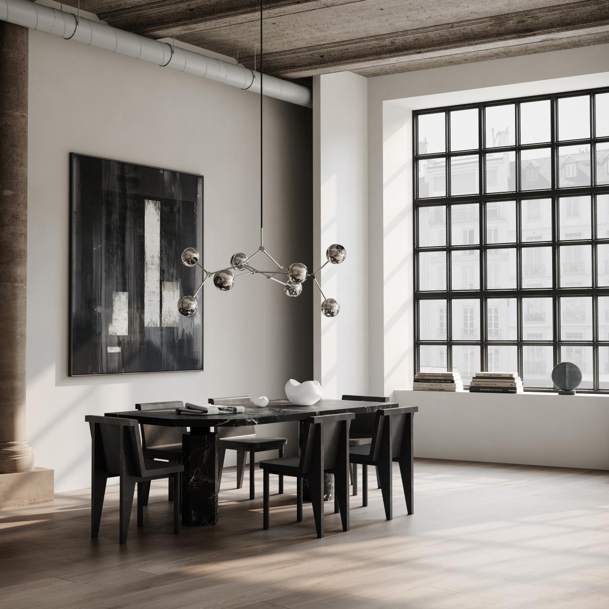 I love this globe chandelier for its modern, sculptural appeal and the way it balances bold design with simplicity. It works well in contemporary or minimalist interiors, especially in open-plan spaces where it can serve as a statement piece. Practical styling tips include pairing it with neutral colour schemes to highlight its chrome finish, or contrasting it with warm tones for a chic, eclectic look. Its playful, asymmetric structure also makes it suitable for more eclectic setups, adding a touch of industrial elegance without overpowering the room. Hang it at a height that allows a clear view of the individual globes, creating a focal point that’s both functional and visually intriguing.