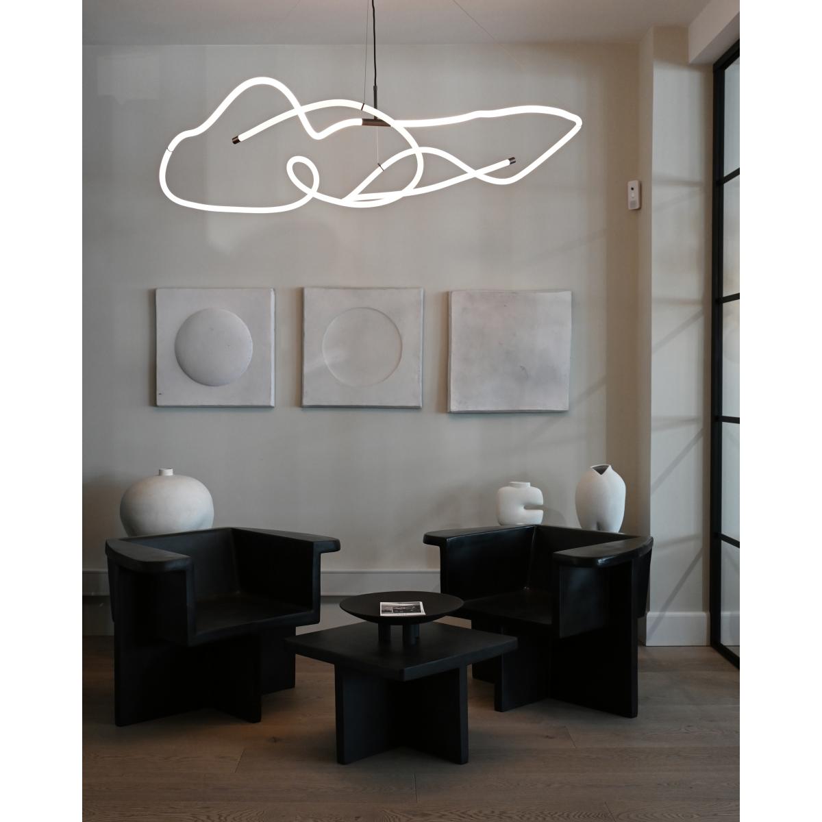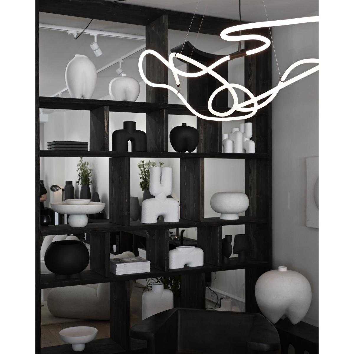 I love this chandelier for its modern yet sculptural appeal - it's a statement piece that adds a touch of sophistication without overwhelming the space. The big ceiling lamp in bronze works particularly well in contemporary or industrial interiors, bringing warmth and a hint of luxe to minimalist schemes. For practical styling, consider hanging it in living rooms with high ceilings or above dining tables to create a focal point. Pairing it with neutral colour palettes allows the bronze finish to stand out, while a simple, uncluttered ceiling area keeps the look clean and impactful. It’s an ideal choice to elevate a space while maintaining an understated elegance.