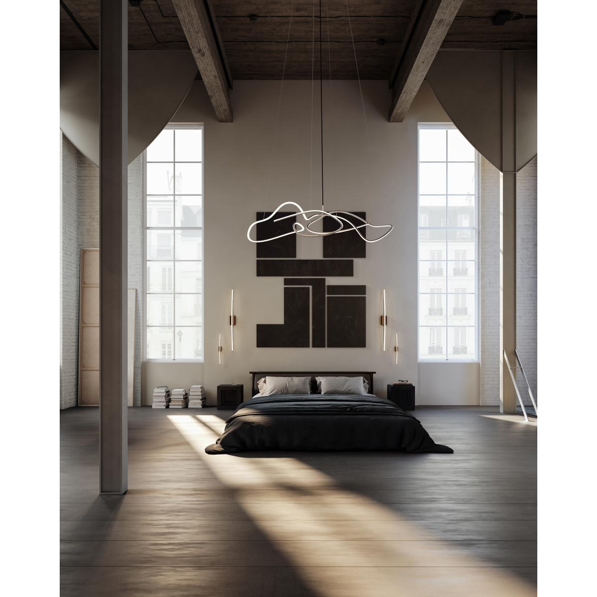 Ghost Chandelier big ceiling lamp from 101 Copenhagen is a modern and minimalist ceiling lamp that becomes as much a sculpture as a lamp in your home. Ghost chandelier is a true statement lamp with a graphic and artistic expression, where the lamp's shape is perceived differently depending on the angle from which you view it. The built-in LED light source provides a pleasant warm white glow and is held up by four stainless steel wires, which also allow you to adjust how far from the ceiling you want the lamp to hang.