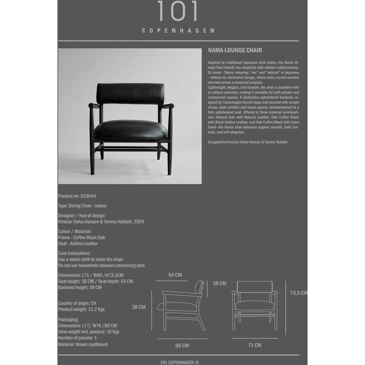 Nama lounge chair from 101 Copenhagen is a sculptural lounge chair that combines Japanese simplicity with Nordic precision. The chair’s construction consists of rounded wooden dowels where each part has a clear function, creating an airy, harmonious form. The upholstered back cushion attaches with two straps and is paired with a fully upholstered seat that offers soft comfort and an inviting expression. Designed by Kristian Sofus Hansen and Tommy Hyldahl, it’s a timeless armchair that ages beautifully and brings natural warmth to living rooms and lounges.