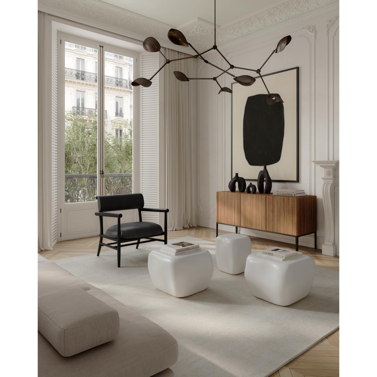 I love this chair for its sleek, minimalist design and high-quality craftsmanship. The black aniline leather adds a sophisticated, subtly textured finish that works well in both contemporary and Scandi-inspired interiors. It’s versatile enough to sit beautifully in a living room corner, home office, or even a stylish bedroom. For styling tips, pair it with neutral tones and natural materials like wood or wool to create a balanced, inviting look. To add a bit of colour or pattern, consider accent cushions or throws, but the chair’s understated elegance means it can stand confidently on its own. Its compact size also makes it practical for smaller spaces or as an accent piece that doesn’t overwhelm the room.