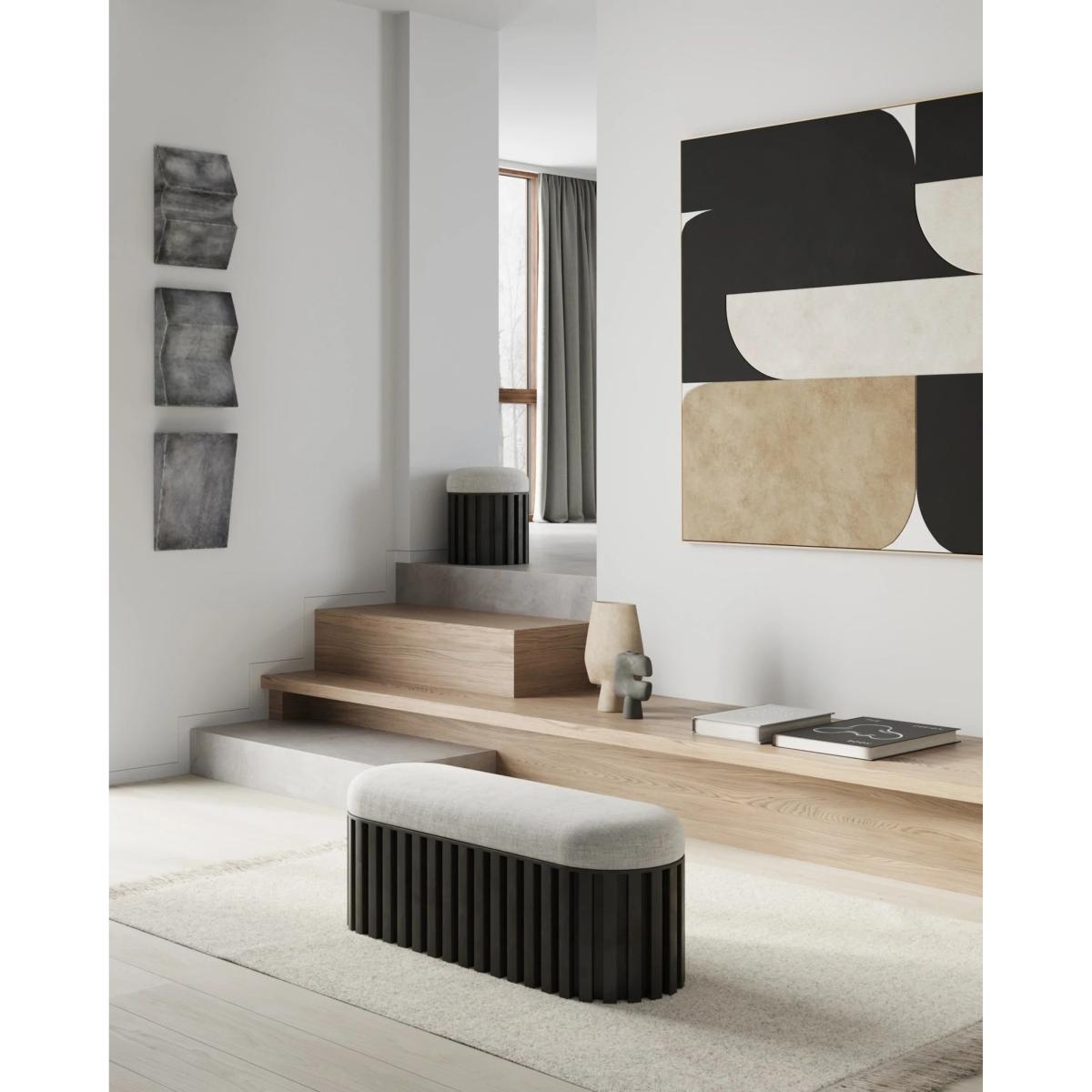 I love this bench because of its versatile, understated design that works well in a range of interiors-from modern minimalist spaces to more eclectic or hotel-inspired schemes. The linen seat adds softness and comfort, making it ideal for entries, bedrooms, or as extra seating in living areas. Its black moulded base with textured detailing provides a lovely contrast that grounds the piece visually. For styling tips, consider pairing it with a large plant or a stack of carefully curated books on top to create an inviting vignette, or use it alongside a dining table or a bed for a chic, relaxed look. Its neutral colour palette makes it easy to incorporate into different colour schemes, adding both practicality and style to your space.