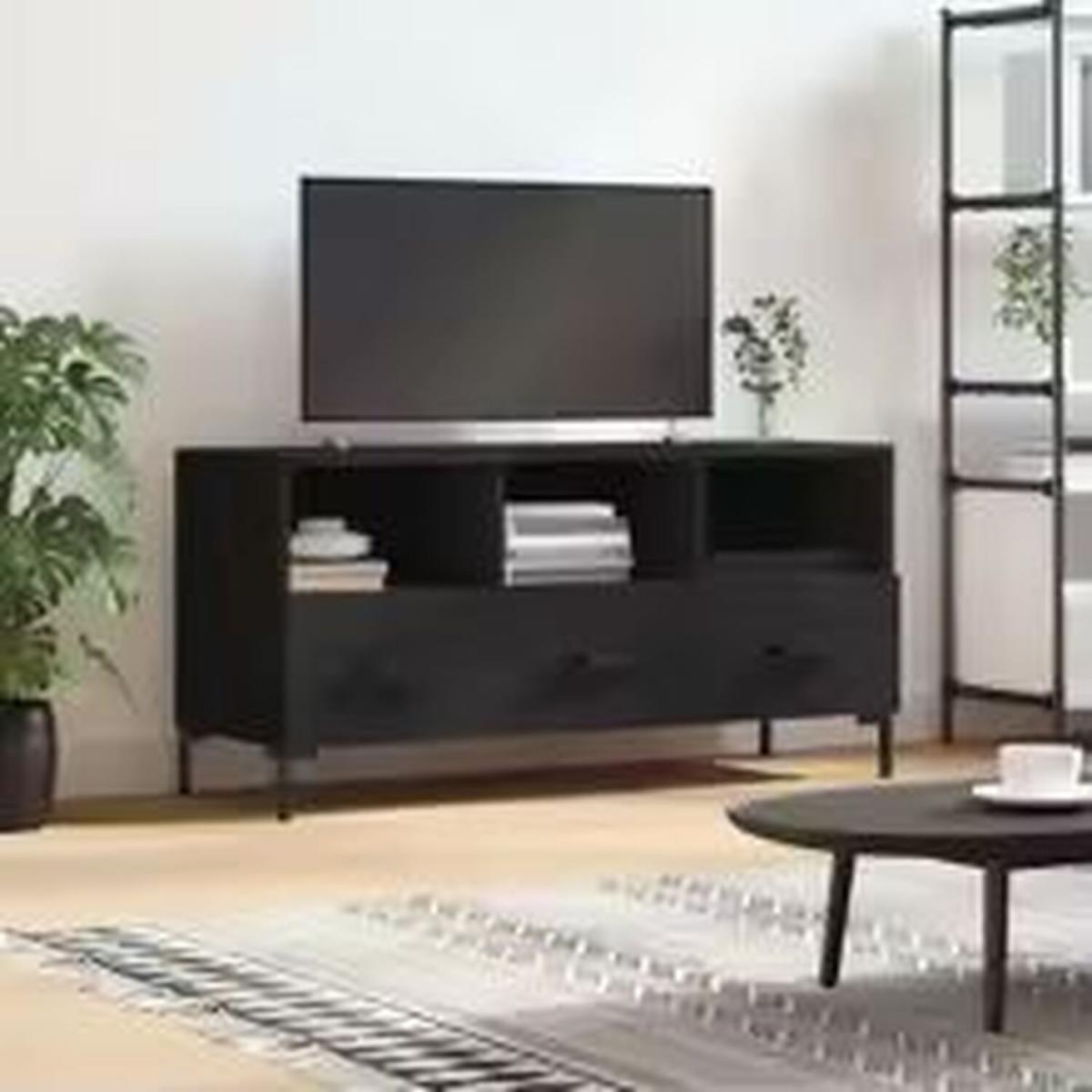 I’m a big fan of this black TV unit for its sleek, low-profile silhouette and sturdy metal legs - it feels both modern and a little mid-century. The engineered wood finish gives you a clean, matte look that won’t overpower your space, while the mix of open cubbies and drawers keeps remotes and cables neatly stashed away. It works brilliantly in industrial, Scandi-style or contemporary loft interiors. To style it, try flanking the screen with a sculptural pot plant on one side and a stack of art books with a simple ceramic vase on the other. Tuck woven or wire baskets into the lower drawers for media storage, and keep the top surface clutter-free so the black finish remains the star.