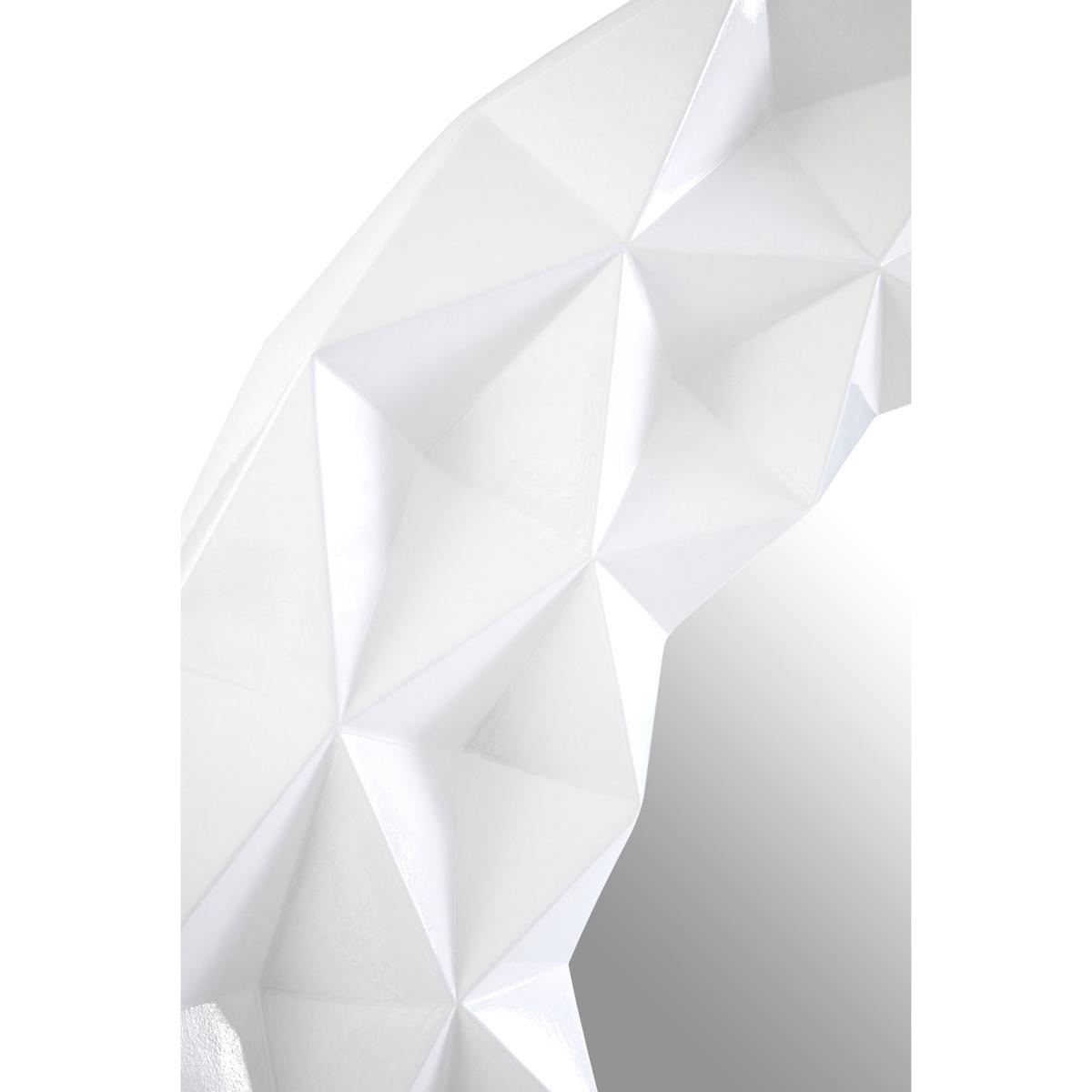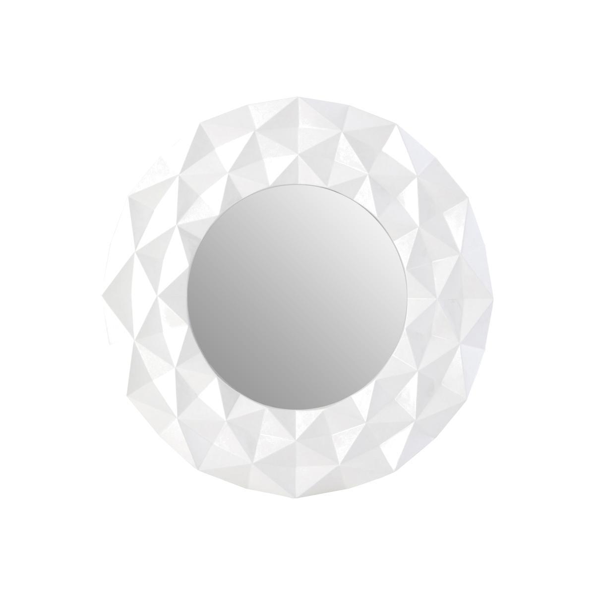 This product will be dispatched by one of our trusted suppliers. This modern high gloss wall mirror’s 3D frame creates drama. Made from durable polyresin, its geometric ridges combine to create a 3D effect. The circular mirror counterpoints the angled frame, while its bevelled edges help to refract light. Style it with black and white tones to create a monochrome effect. Product Dimensions: W103 x D6 x H103 cm