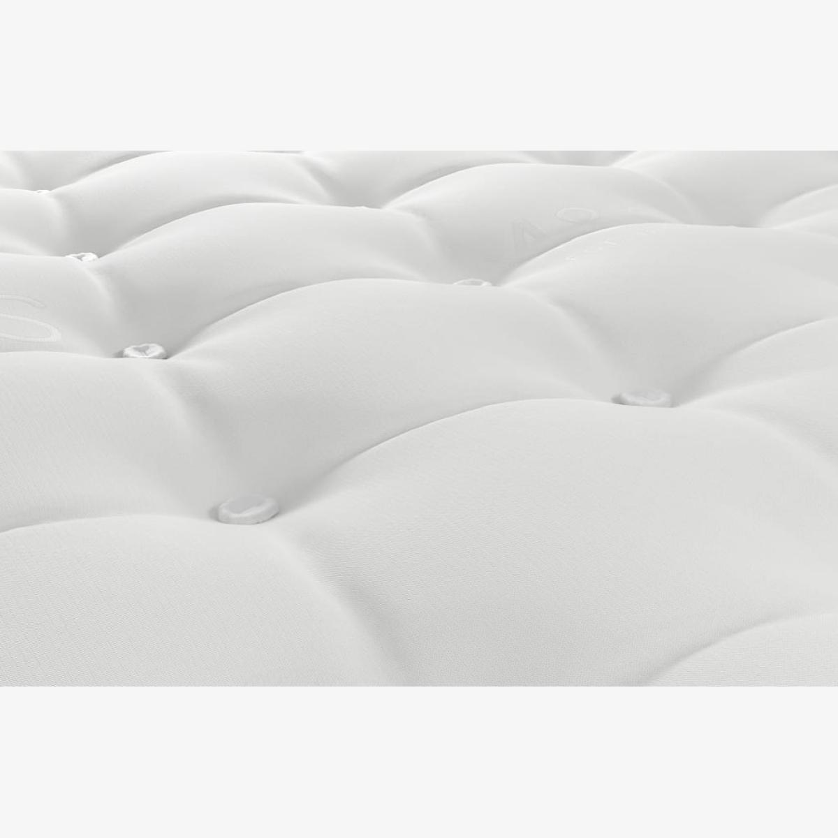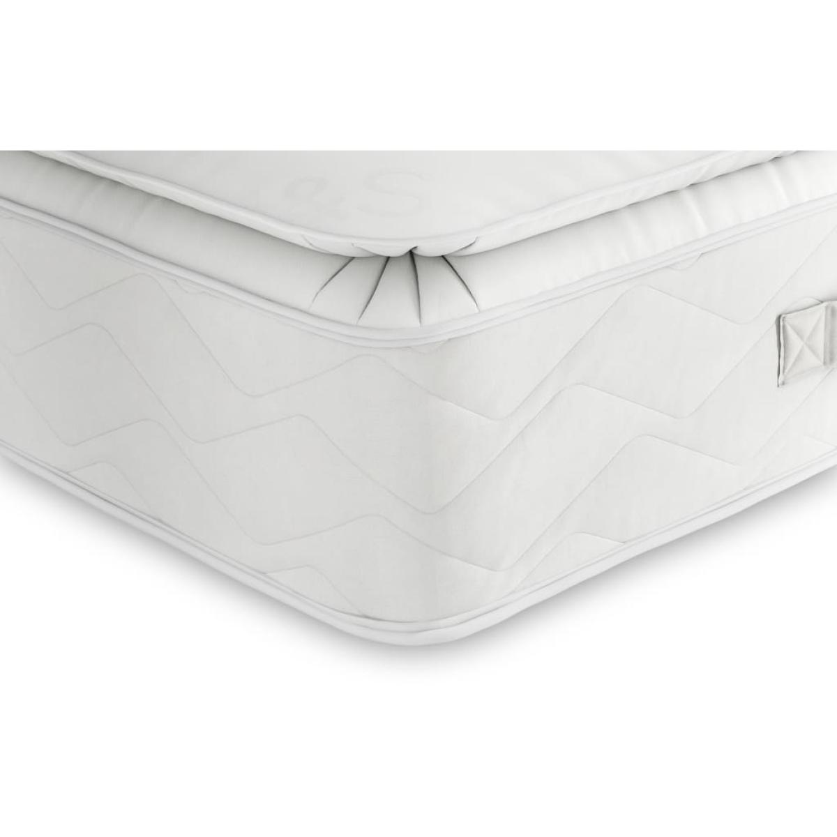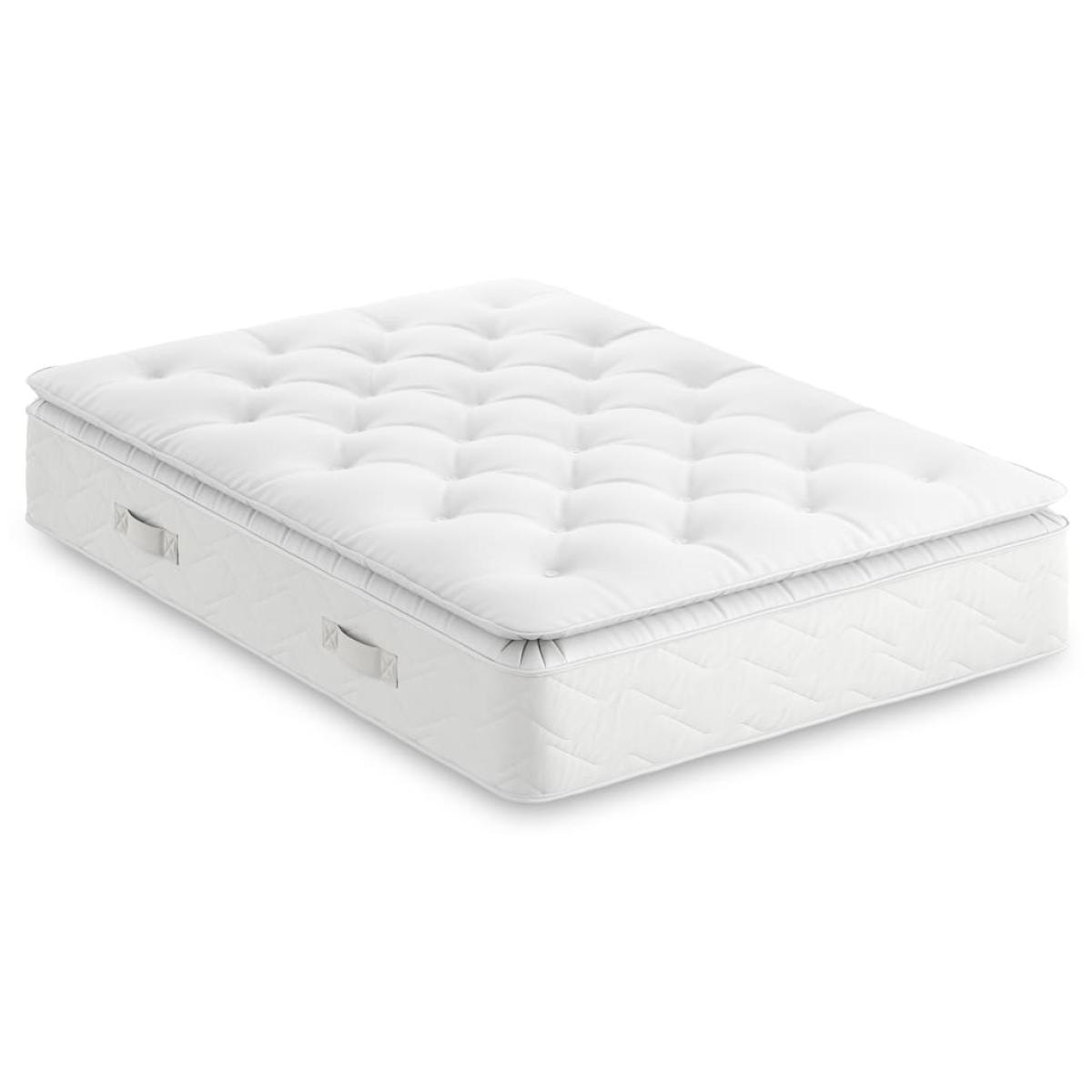 Look forward to a sensational snooze with this premium pillowtop mattress. The pocket spring design features springs each woven into individual pockets, independently moulding to your contours for support just where you need it. It also reduces motion transfer, making this ideal for couples as you'll be less disturbed by your partner's movements. We've added a pillowtop layer which is made up of tiny springs to provide that sumptuous 'sink-in' feeling. This mattress offers a medium level of support while the luxurious wool filling is naturally hypoallergenic and breathable, giving a cool and comfortable night's sleep. Four side vents help increase airflow, while quilted side stitching provides added durability. As a non-flip design, this mattress doesn't need to be turned and can instead be rotated easily using the four handles. You can rest assured that this UK-made piece comes complete with a 10-year guarantee.