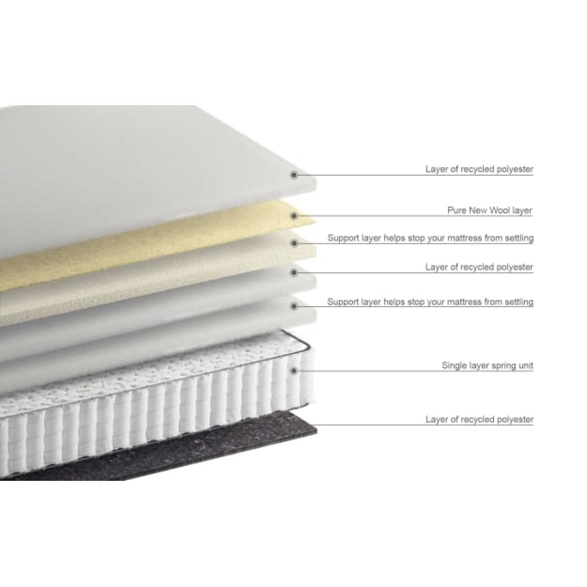 Look forward to a sensational snooze with this premium pillowtop mattress. The pocket spring design features springs each woven into individual pockets, independently moulding to your contours for support just where you need it. It also reduces motion transfer, making this ideal for couples as you'll be less disturbed by your partner's movements. We've added a pillowtop layer which is made up of tiny springs to provide that sumptuous 'sink-in' feeling. This mattress offers a medium level of support while the luxurious wool filling is naturally hypoallergenic and breathable, giving a cool and comfortable night's sleep. Four side vents help increase airflow, while quilted side stitching provides added durability. As a non-flip design, this mattress doesn't need to be turned and can instead be rotated easily using the four handles. You can rest assured that this UK-made piece comes complete with a 10-year guarantee.