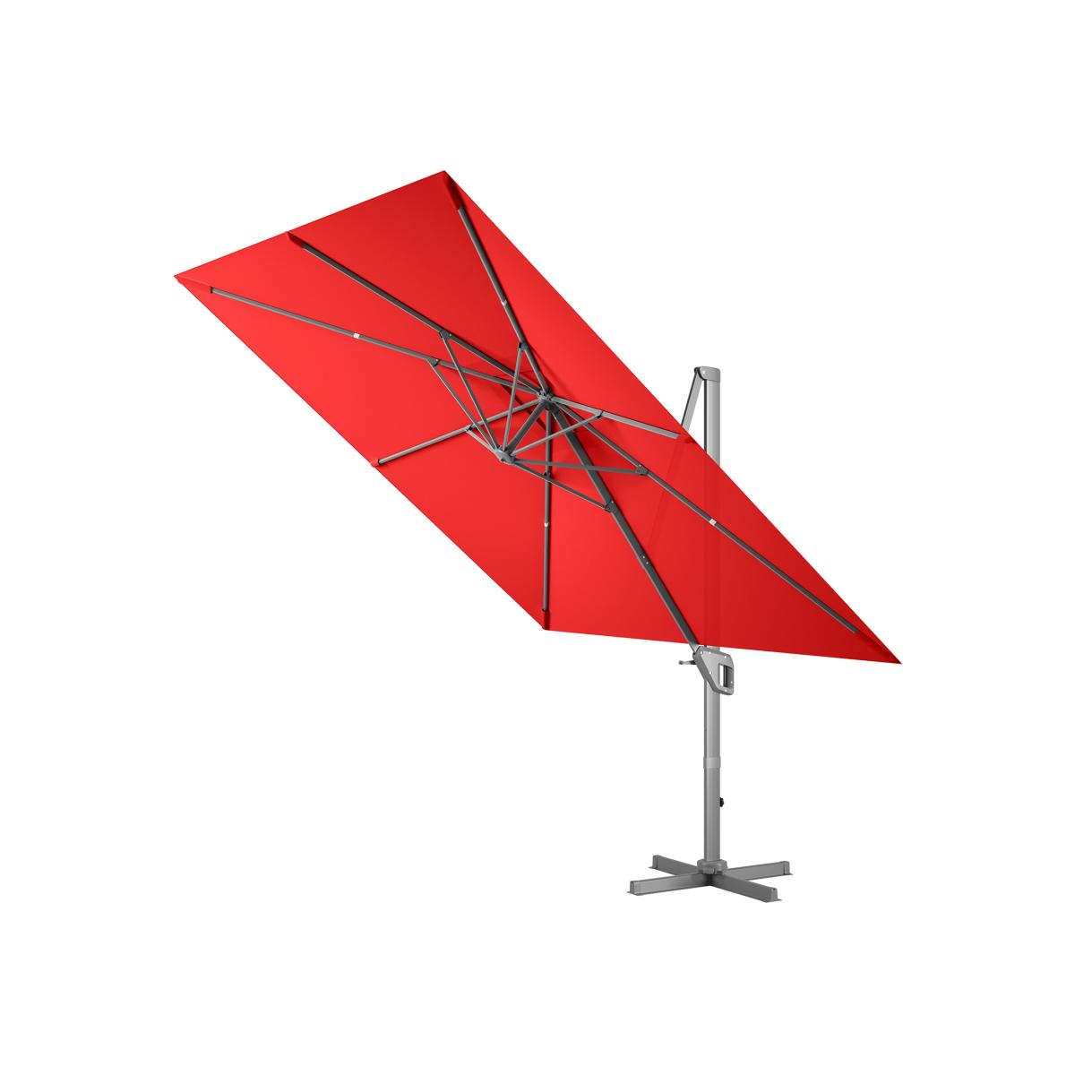 Our patio umbrella provides you with a shady and comfortable place to enjoy beautiful natural scene in sunny afternoon. The patio umbrella is crafted with 8 durable aluminum ribs and thick aluminum pole coated with rust-resistant finish, which ensures excellent durability and long-term outdoor service life. In addition, this patio umbrella has 4-angle tilt adjustment and can be rotated 360 degrees at will, offering all-round sun protection. And its sun-protective fabric will block up 98% harmful sun lights. A weighted base (not included) is necessary to enhance stability while using. Detailed instruction ensures quick set-up, so you can place it anywhere as needed. What's more, the umbrella will be an eye-catching decoration in outdoor occasions.