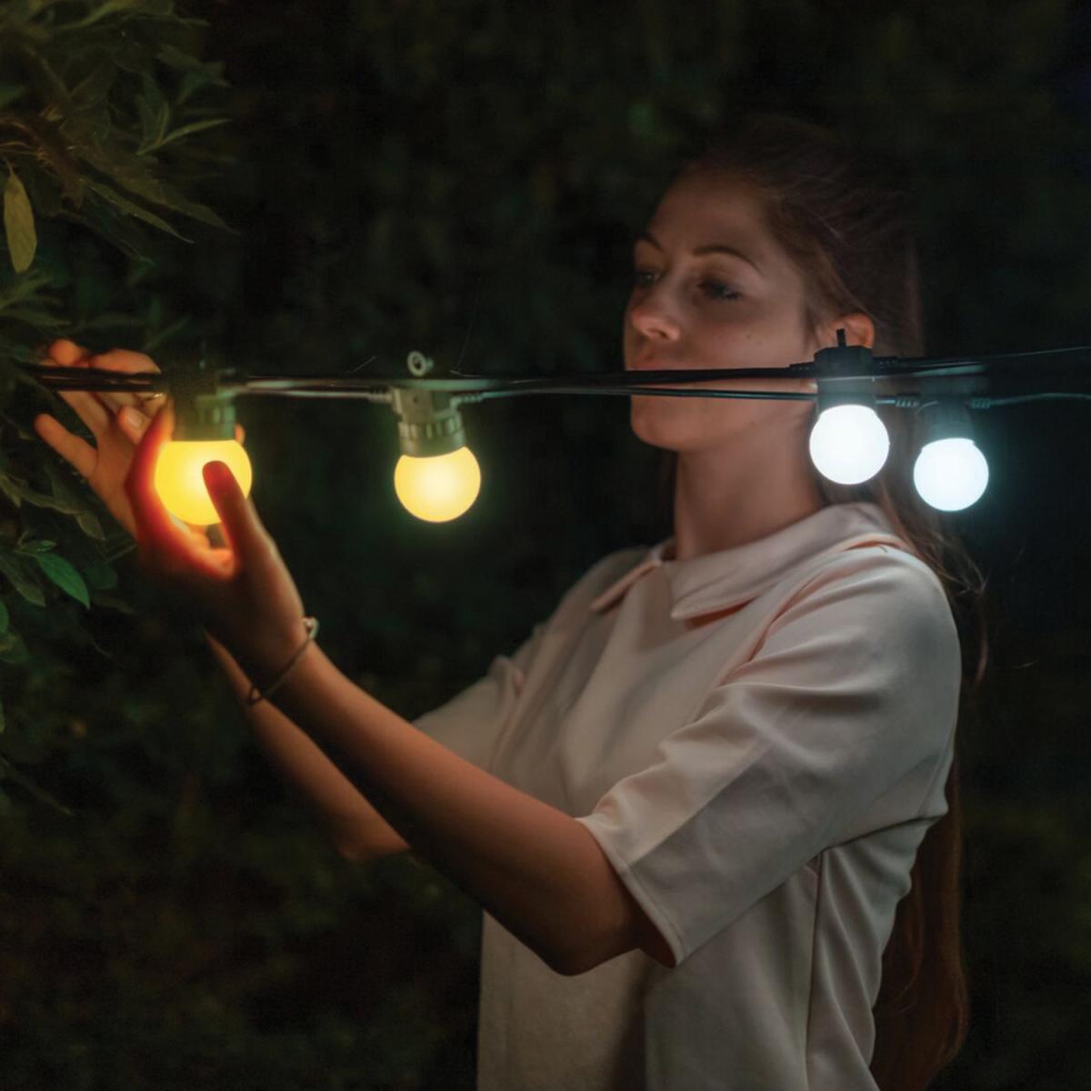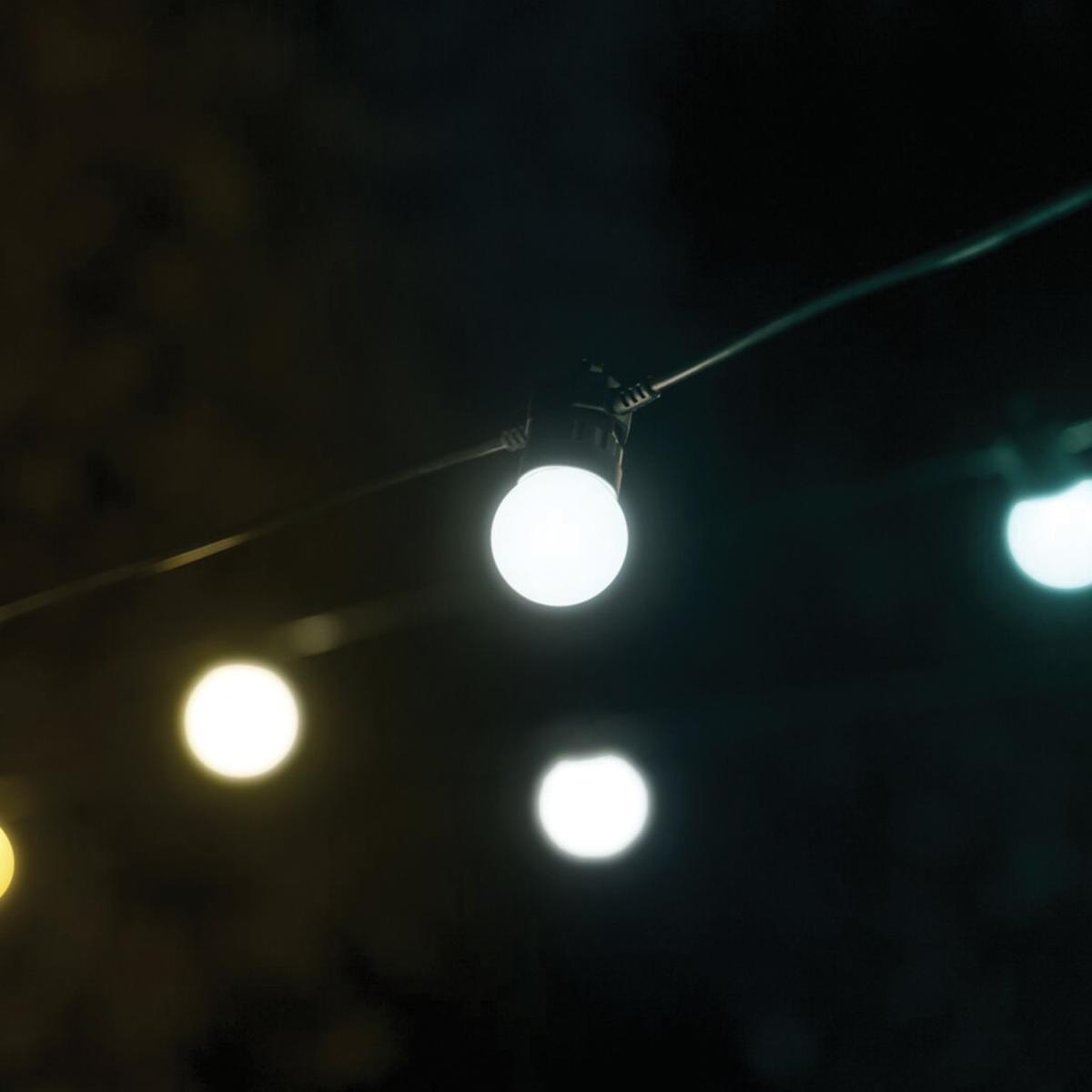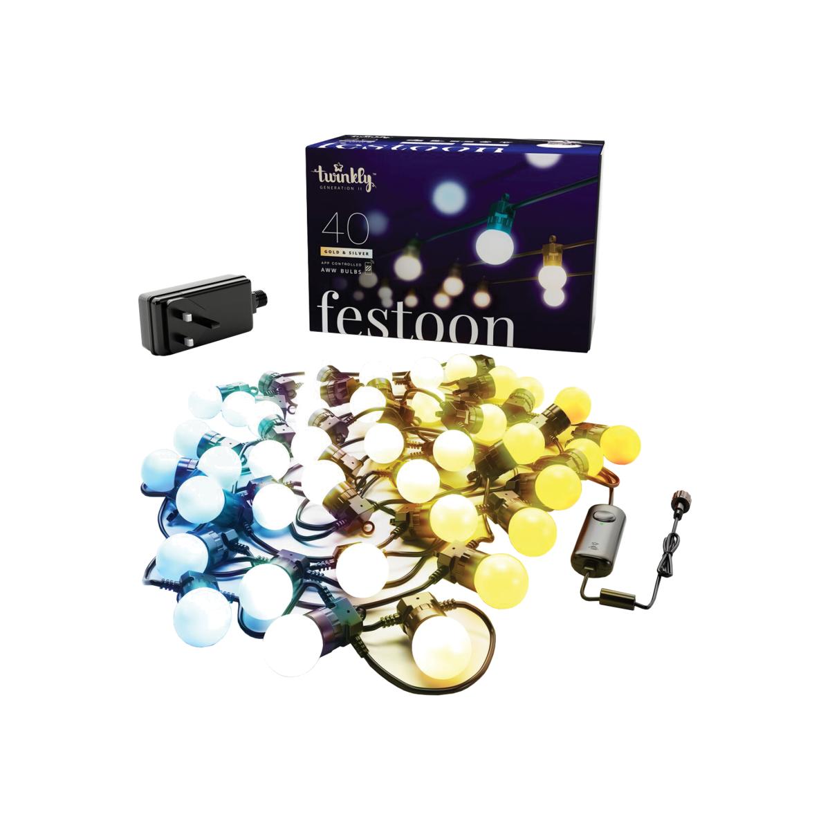 Twinkly Festoon is a smart LED bulb lights string that can be controlled via app and vocal assistants. With a lighted length of 20 meters, consisting of 40 G45 shaped AWW LED bulbs, Festoon Gold Silver is designed to take the warmth and elegance of classic white shades to the next level, with dedicated amber, warm white and cold white light sources seamlessly set on each single LED. Twinkly Festoon is perfect both for summer and the Christmas season, bringing the most advanced technology to your outdoor lighting decoration