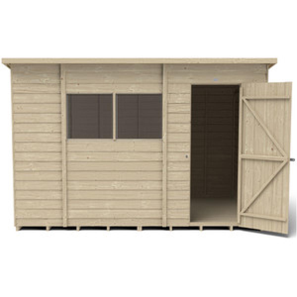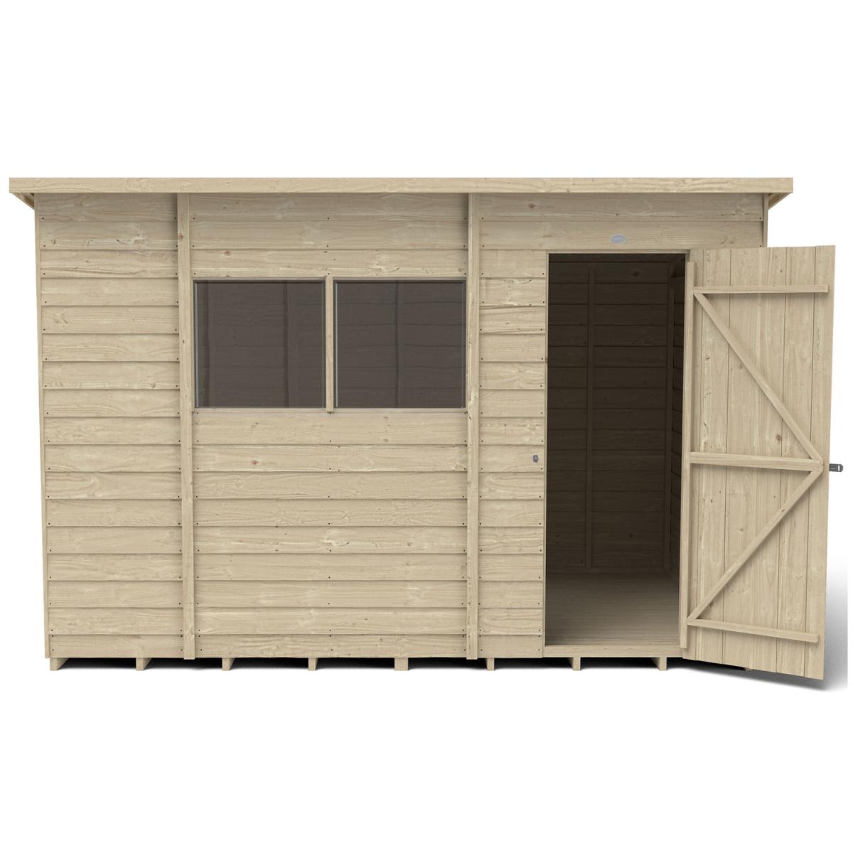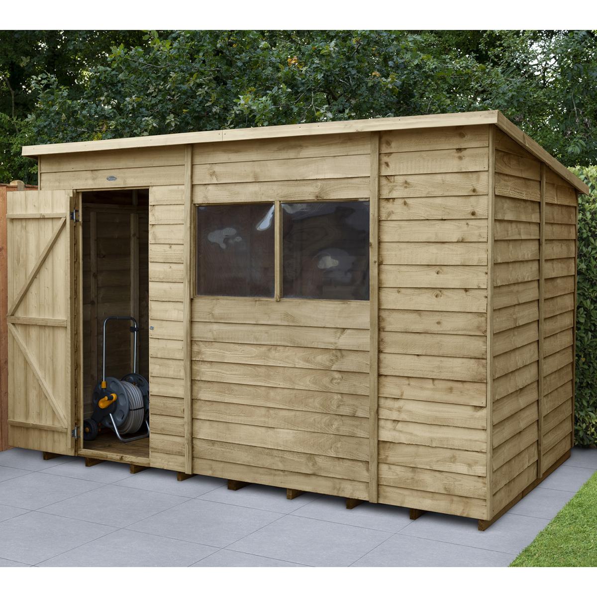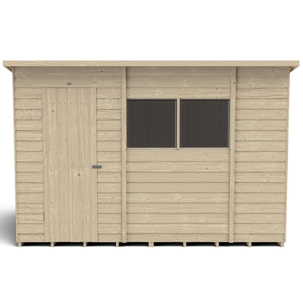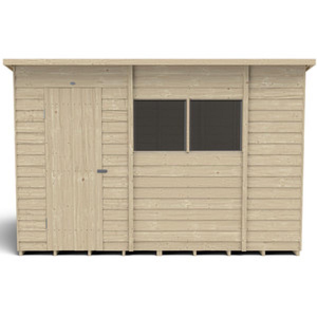 The 10x6 Overlap Pressure Treated Pent Shed is the ideal garden storage shed, helping you keep your garden neat, tidy, and stylish. The slanted pent roof is perfect for placing this shed against a wall or fence and will look brilliant in your garden. A larger garden shed, it’s perfect for storing away lots of heavy garden machinery and tools, bikes, kids' outdoor toys, and much more. Constructed using pressure treated timber, the Overlap Pent Shed will stay strong and durable for years to come. It is resistant to rot and fungal infections, and the overlap design of the timber boards allows for natural movement of the timber during changing weather conditions and aid in water run-off. With increased framing to give the building a stronger construction, the shed comes with a solid timber floor, which is much hardier than more common OSB, making it ideal for storing heavier gardening equipment. The windows are made from shatter-proof PET glazing, which won't become yellow and brittle over time, making sure your shed always looks attractive. The shed also comes with hidden security measures, featuring anti-tamper hinges that can't be seen or accessed from the outside, as well as a hasp and staple latch that allows you to padlock the door. The pressure treating of the timber allows for the pale gold colour and natural wood grain to really shine through. This paired with the understated yet stylish construction will help this Pent Shed become a decisively sweet and charming structure within your garden, complimenting all natural foliage and any colour scheme of your decor. Installation by a team of professionals is available for an extra yet affordable price, and all fittings and fixtures are included with this shed, as well as easy-to-follow instructions are included for any DIY hobbyists who want to really make this shed their own by building it themselves.