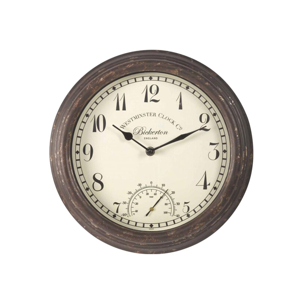 The 12" Bickerton Clock is a stylish, vintage-inspired piece that's suitable for both your garden and your interiors. The clock has classic, Arabic numbers and skip hand movements and is finished with a temperature guage with Centigrade and Fahrenheit reading. Weather-resistant to give it a long life, it's sure to look stunning wherever you decide to place it.