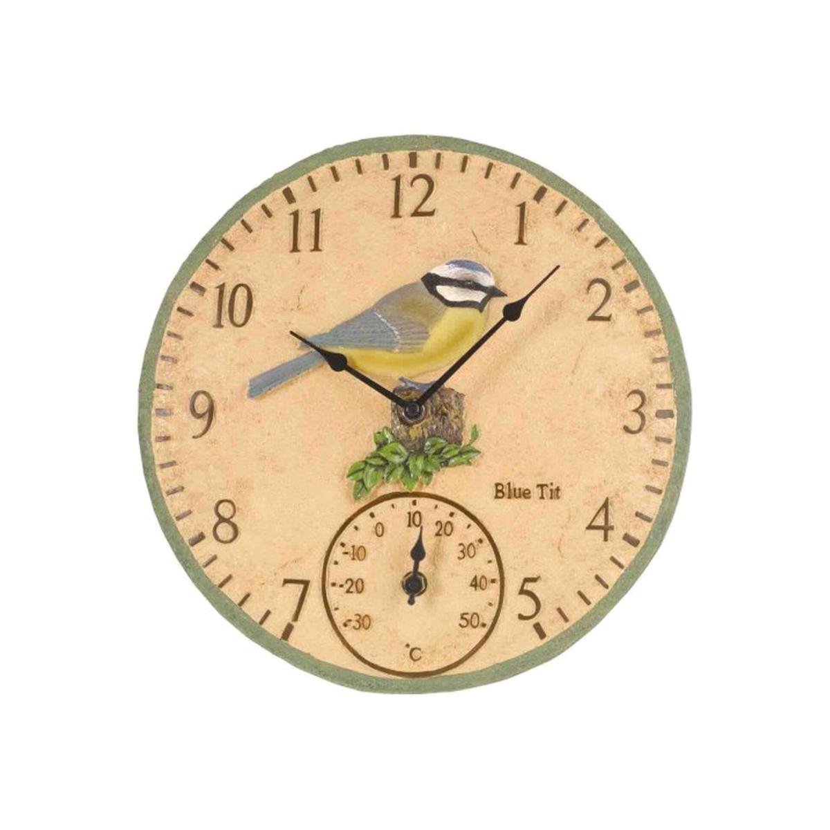 12" Blue Tit Bird Clock - Cream,Blue,Green,Brown