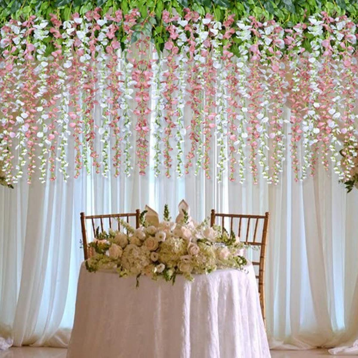 12 Pieces Hanging Artificial Wisteria Vine - Pink