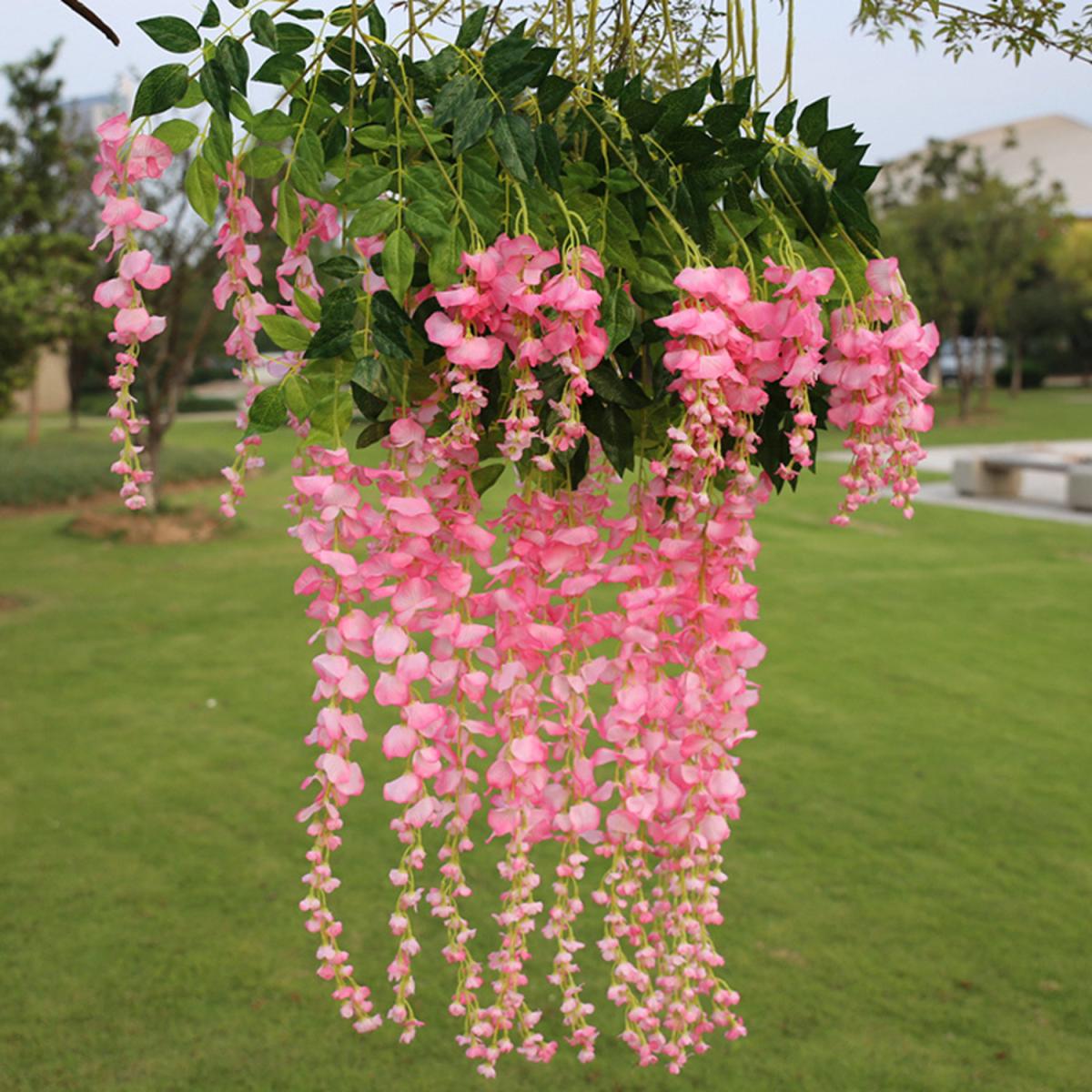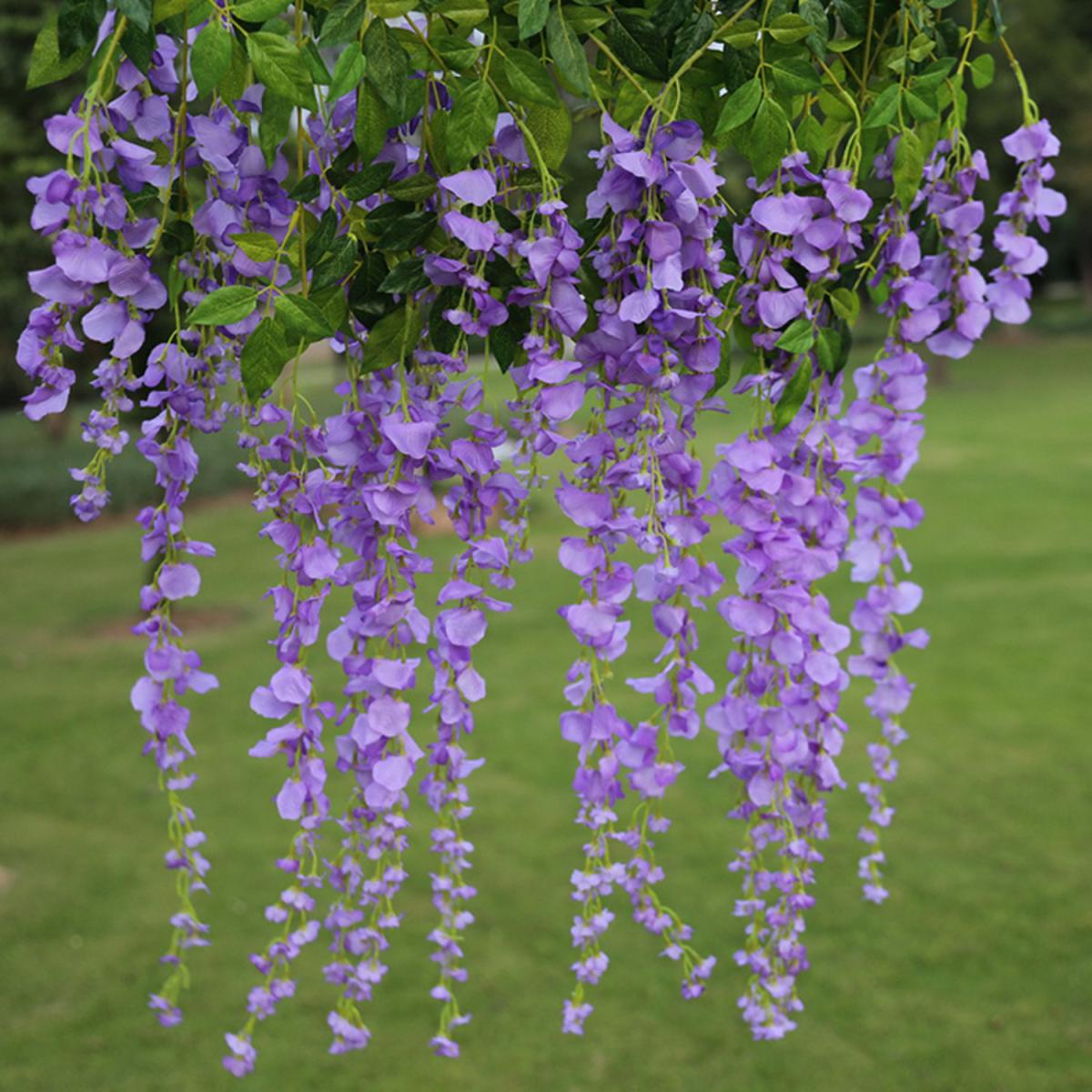 This artificial wisteria captures the real characters of the real one, that' s the secret to its lifelike and natural look. Complemented by clusters of green leaves, the flowers looks more vivid and attractive. Crafted from silk, it will retain the same colour and condition and give you year-round freshness without withering, it is no doubt an amazing addition at a reasonable price.