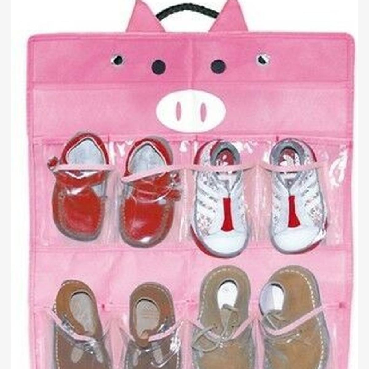 I love this pig-themed organiser for its fun yet functional design, making it perfect for kids' bedrooms or playrooms. Its bright pink colour and playful pig face add a cheerful touch that appeals to children, encouraging them to take responsibility for their shoes. This organiser works well in both contemporary and eclectic interiors, especially when paired with colourful, whimsical decor. Practical styling tips include hanging it near the door to keep shoes tidy and accessible, or using it to introduce a pop of colour in a neutral space. It’s a great solution for keeping clutter under control while adding a charming focal point to a child's room.