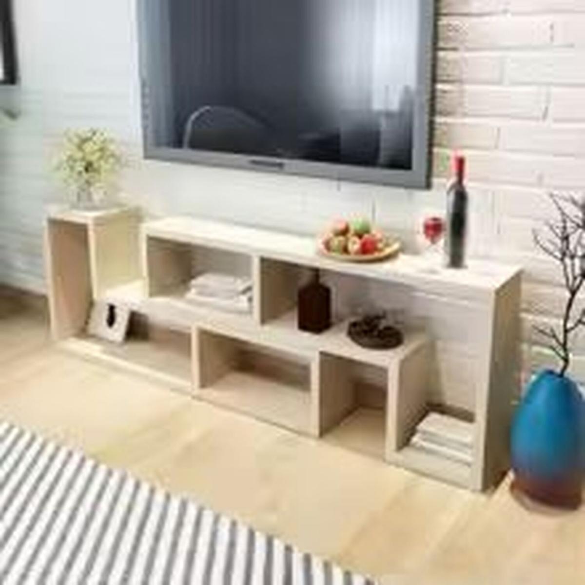 I love the clean lines and natural oak finish of this L-shaped TV unit - it brings warmth without feeling bulky. Its modular compartments work brilliantly in Scandinavian or contemporary schemes, and the low profile keeps the focus on your screen and styling pieces rather than overpowering the room. For practical styling, use the open shelves to display a mix of books and baskets for hidden storage, then add a couple of low-profile ceramics or a slender table lamp to balance the asymmetry. Tuck away game consoles or streaming boxes behind small decorative boxes to keep cables out of sight, and leave the top surface mostly clear so it doesn’t compete with your wall-mounted TV.