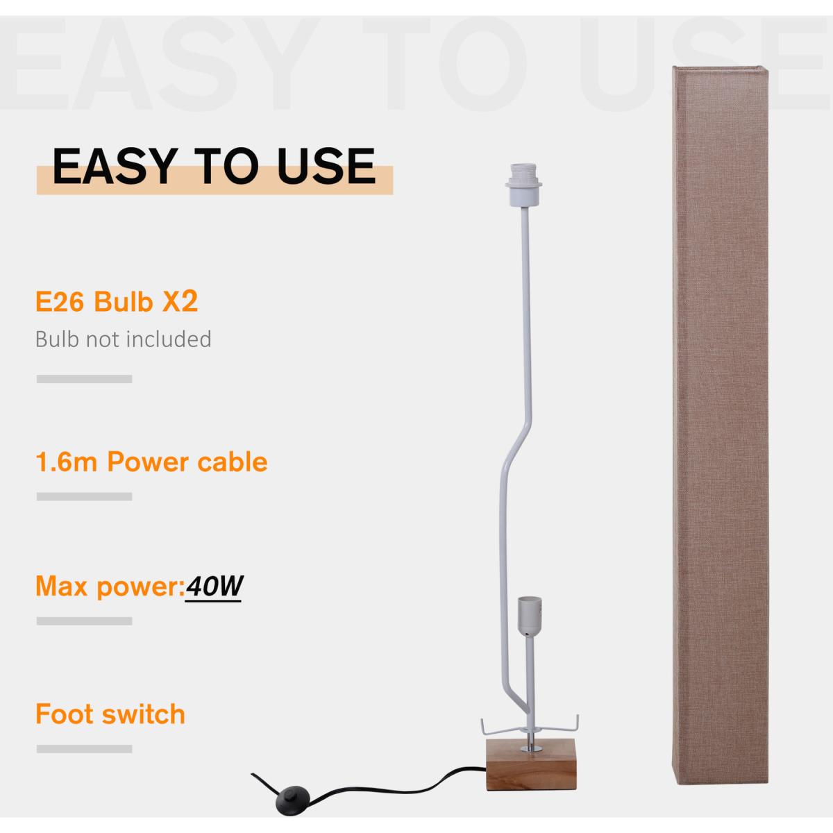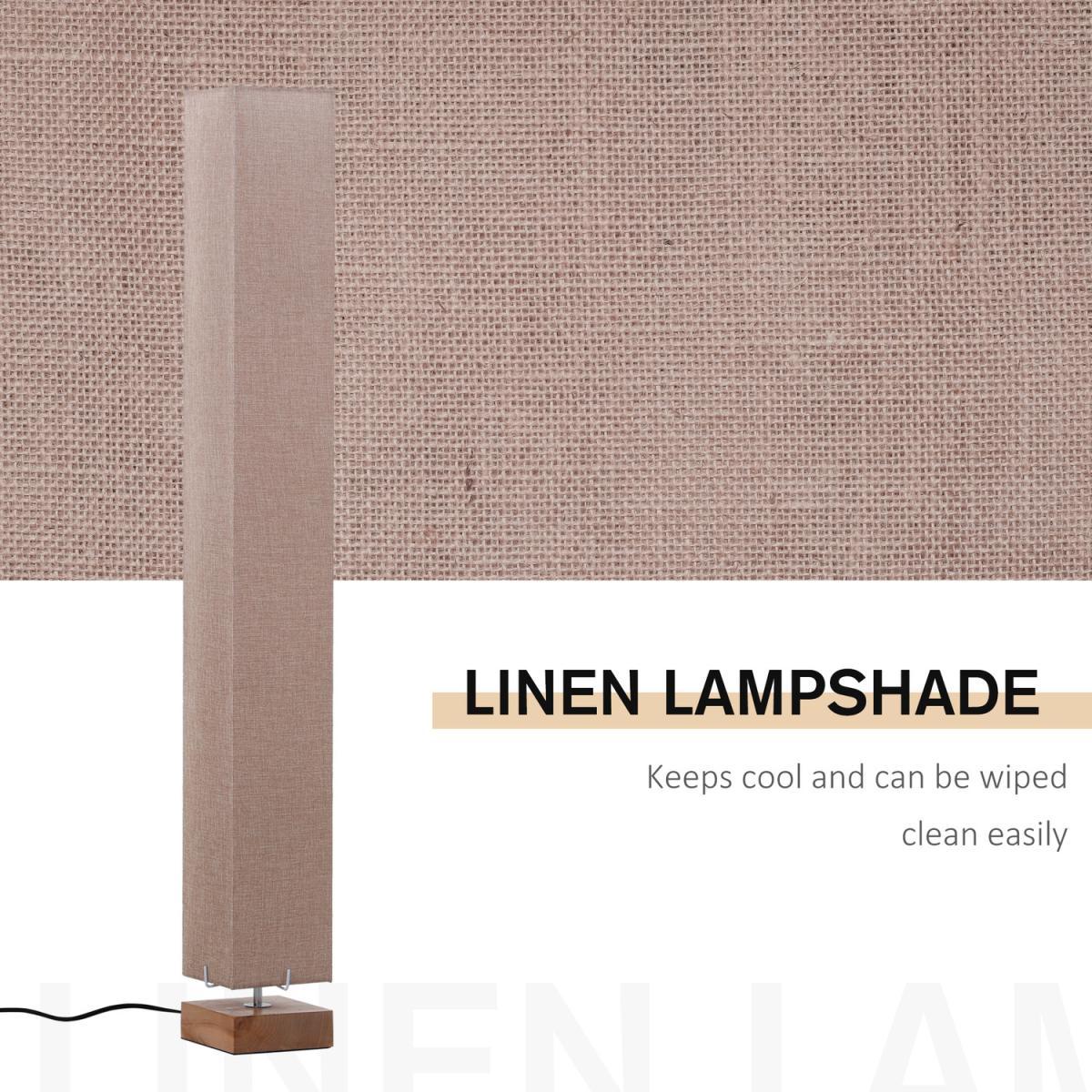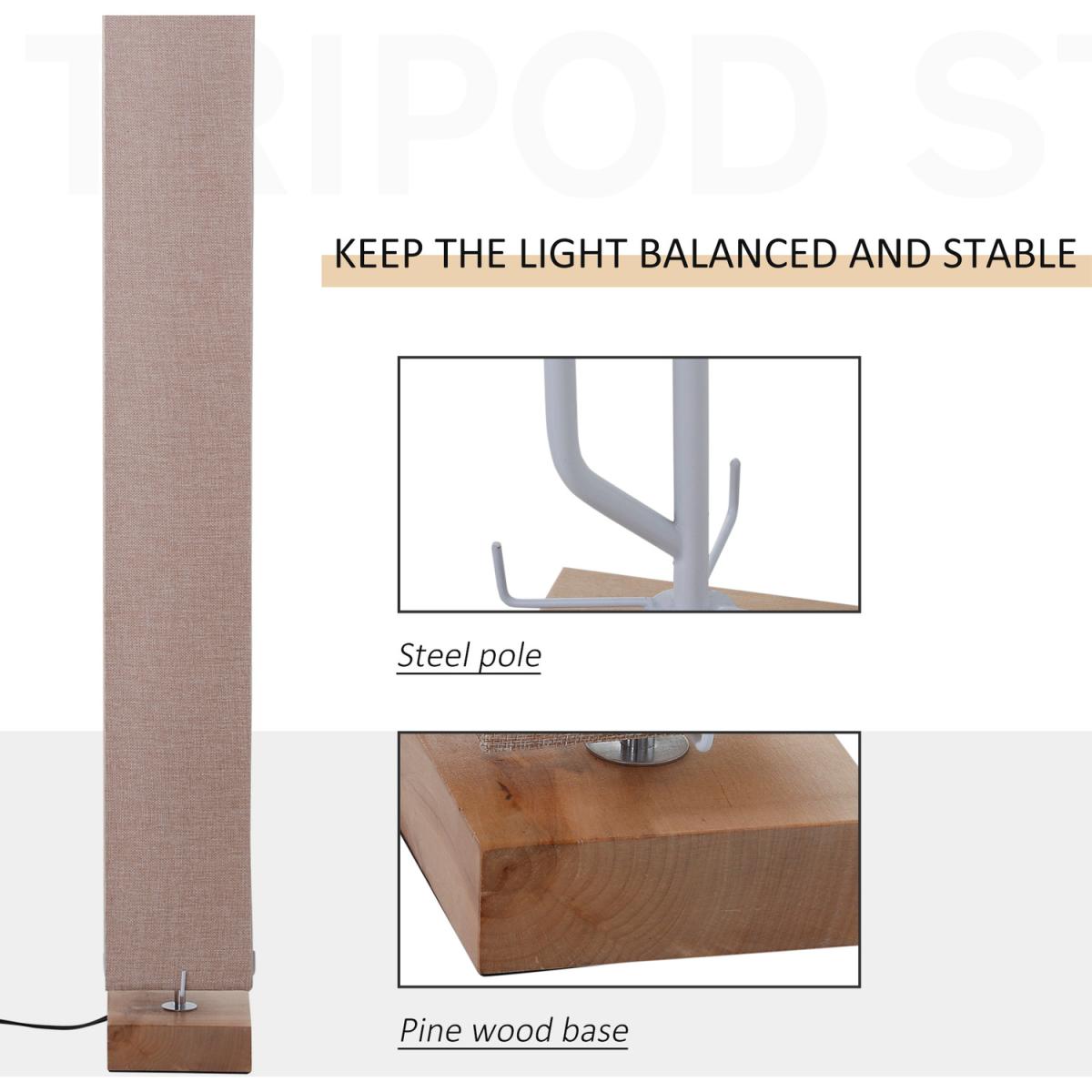 Create a beautiful and welcoming atmosphere in your personal space with this floor lamp from HOMCOM. Standing tall at 120cm, it is made into an oblong design, where steel forms the frame for a solid structure. A fabric shade runs the whole length, cream-white in colour to allow light to seep out, without being too bright - perfect for daytimes and the evenings. The thick pine wood base keeps the balance and adds a stylish finishing touch. Operated by mains, with a foot pedal to turn on and off easily.