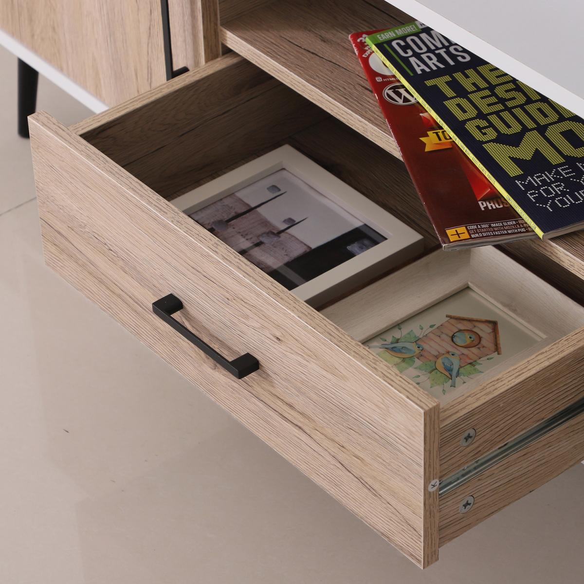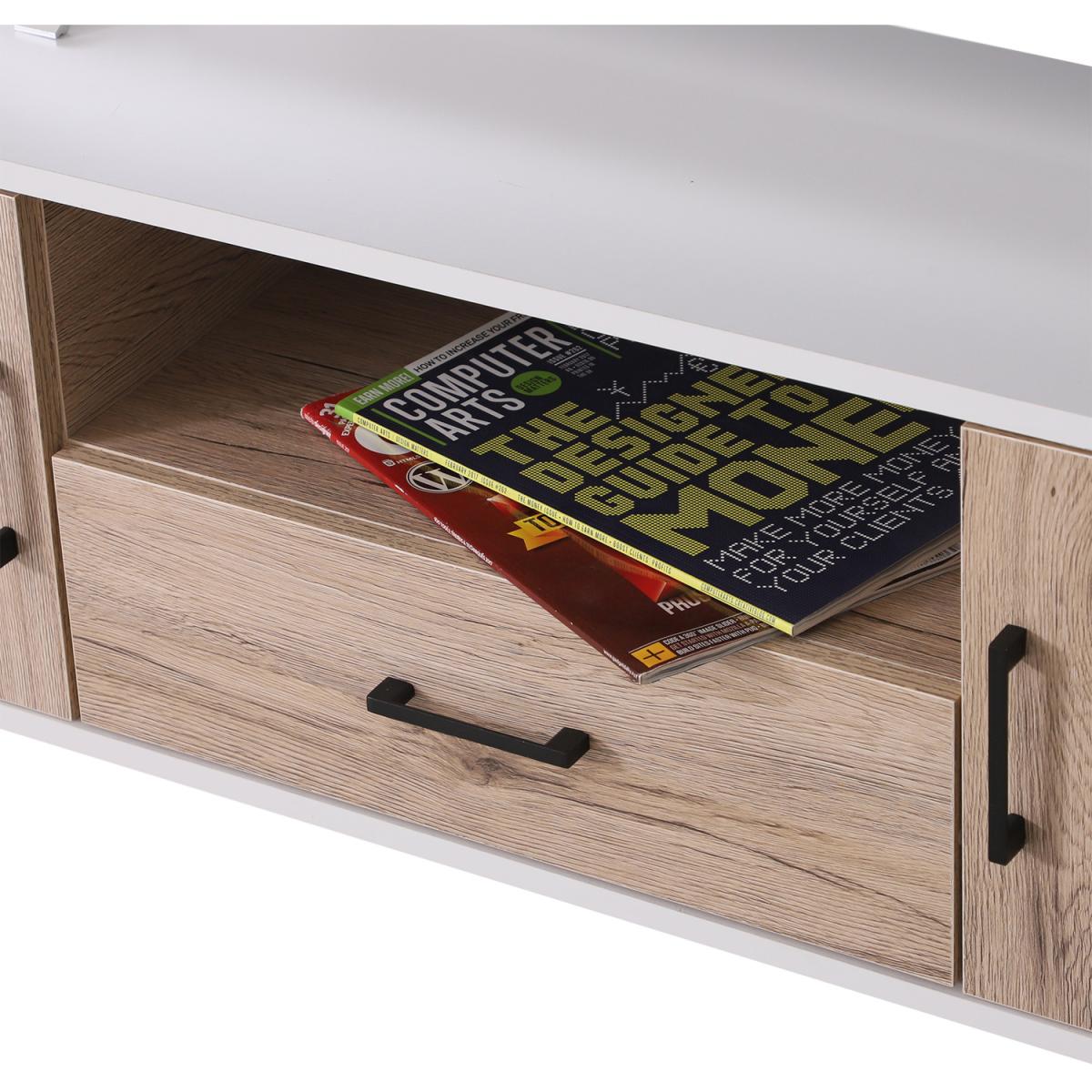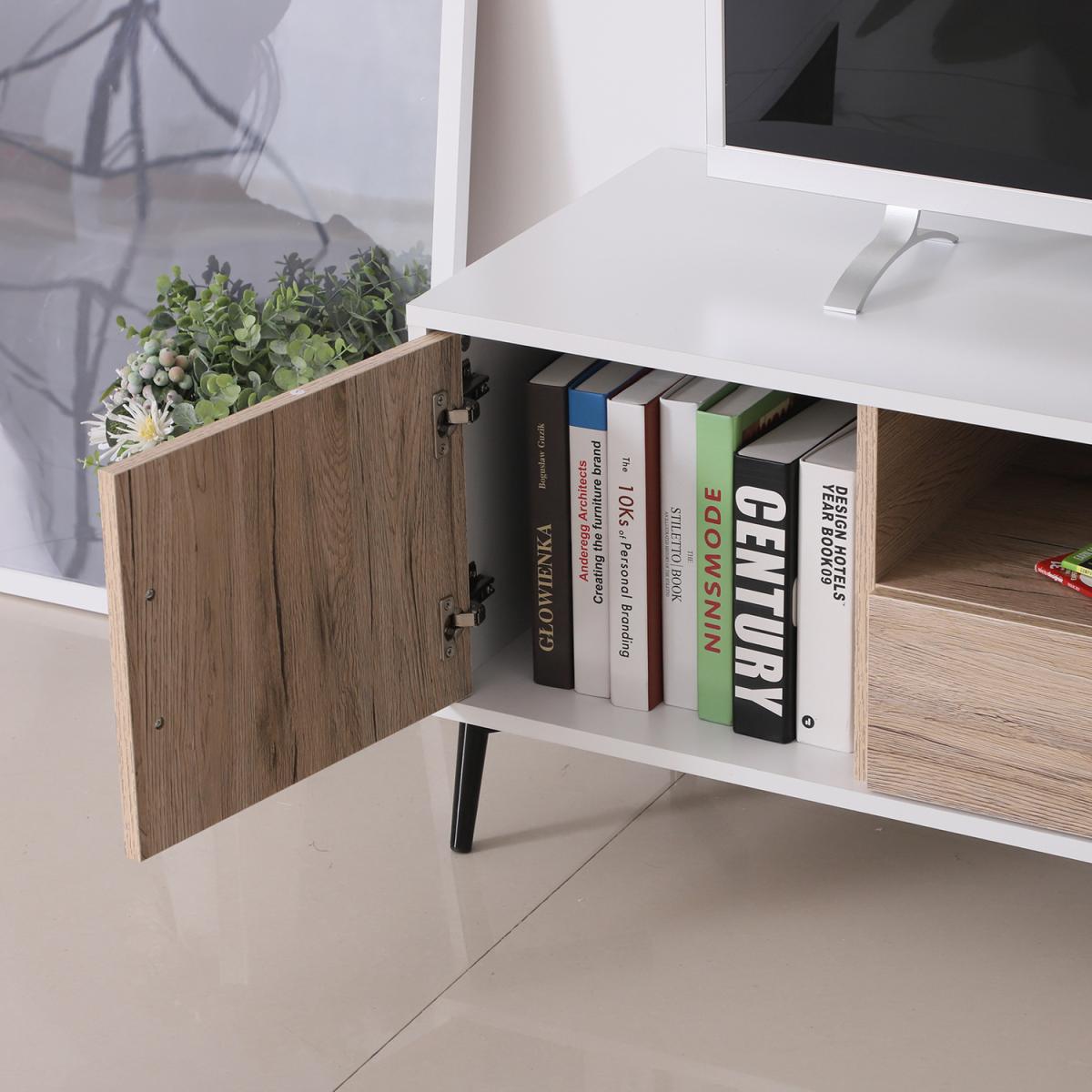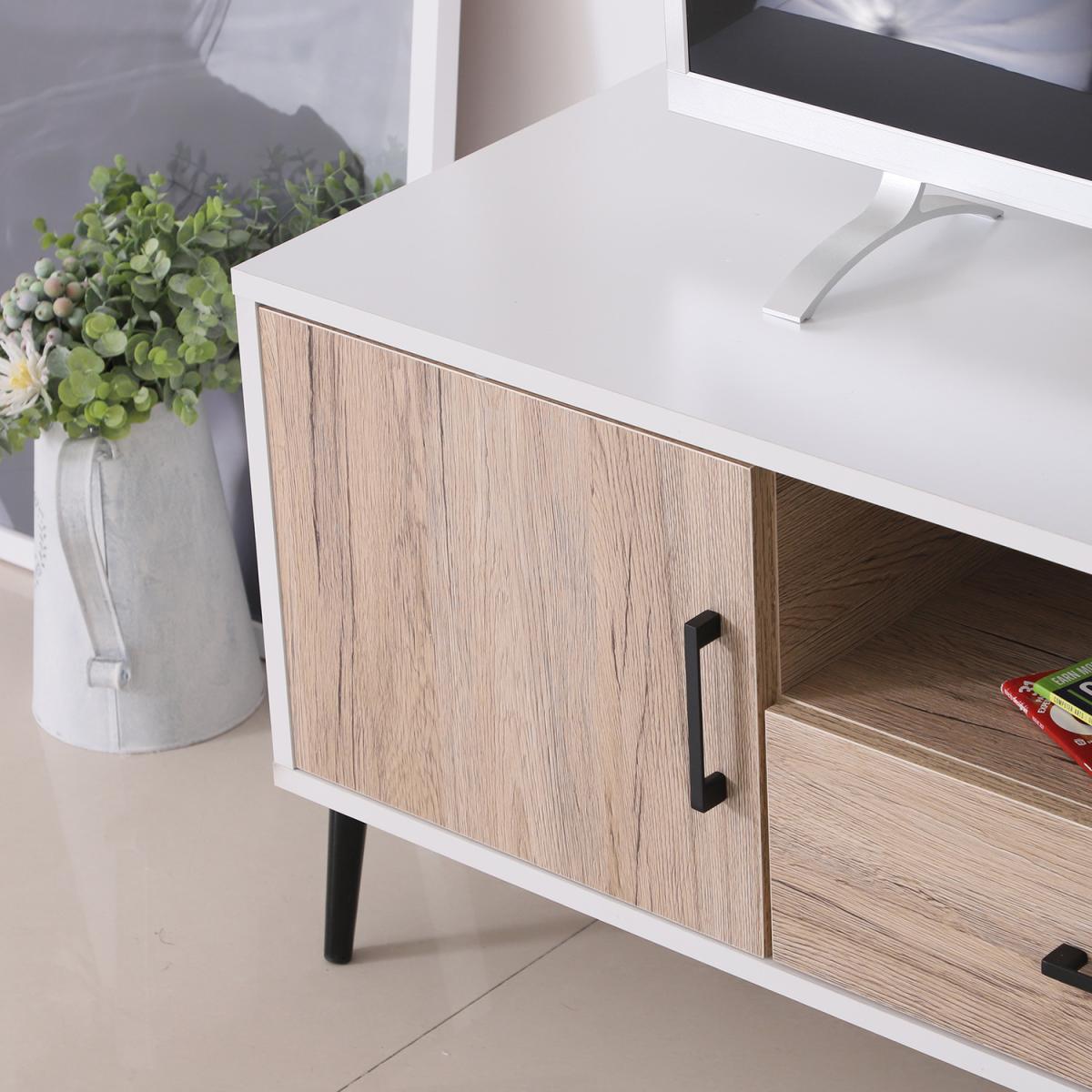 Ensure your TV and other media are kept in style, thanks to this two-tone Scandinavian style stand from HOMCOM. Made from a blend of particleboard and MDF for durability and strength that can hold up to 25kg in weight, it is crafted into a beautiful design that features two end cupboards, a bottom slide-out drawer and an open shelf in the middle, giving you plenty of storage space for DVDs, electronics and more. A large surface top provides plenty of room for a television and decorative objects, with four metal feet to keep the unit stable. It will help you get the most out of your space with elegance and ease.