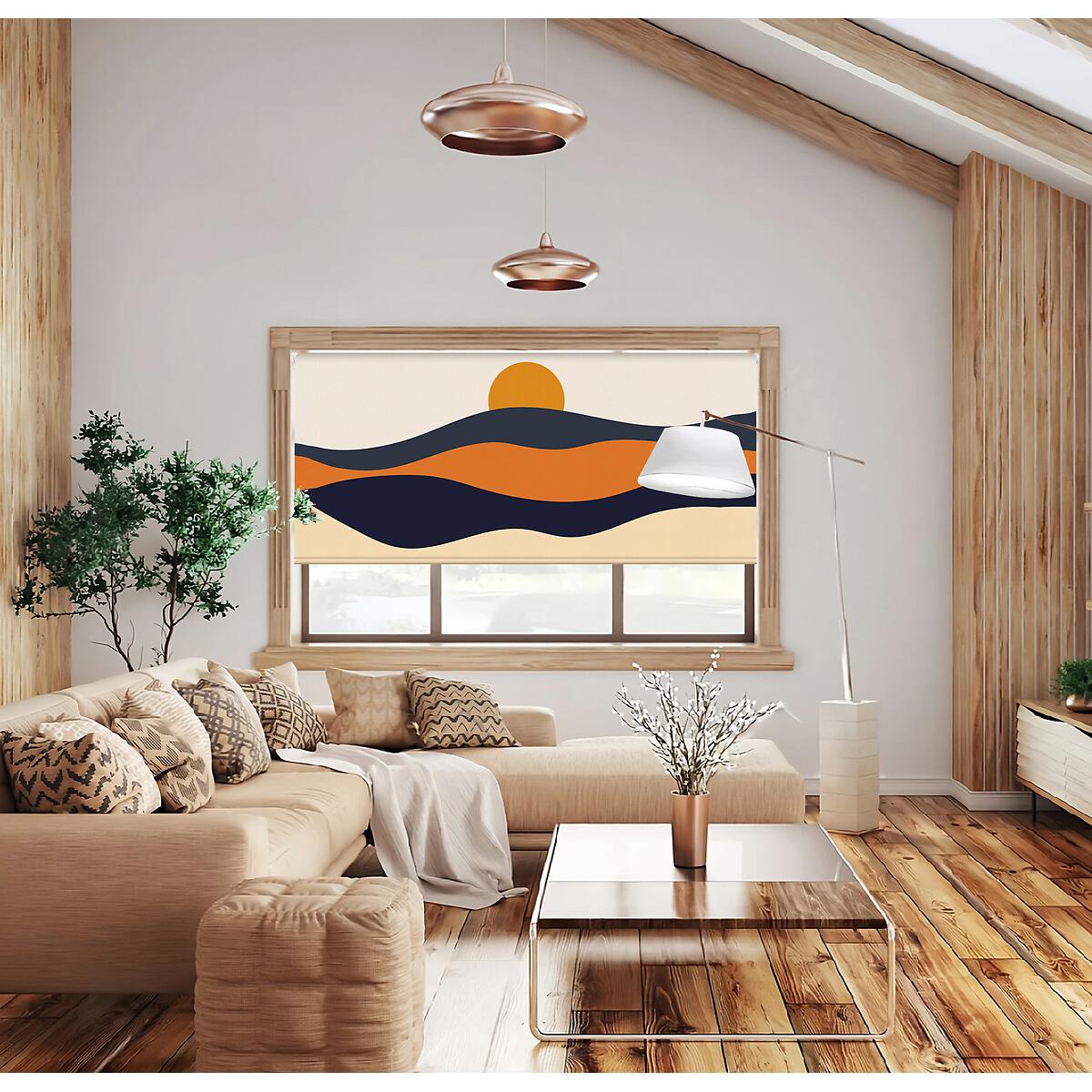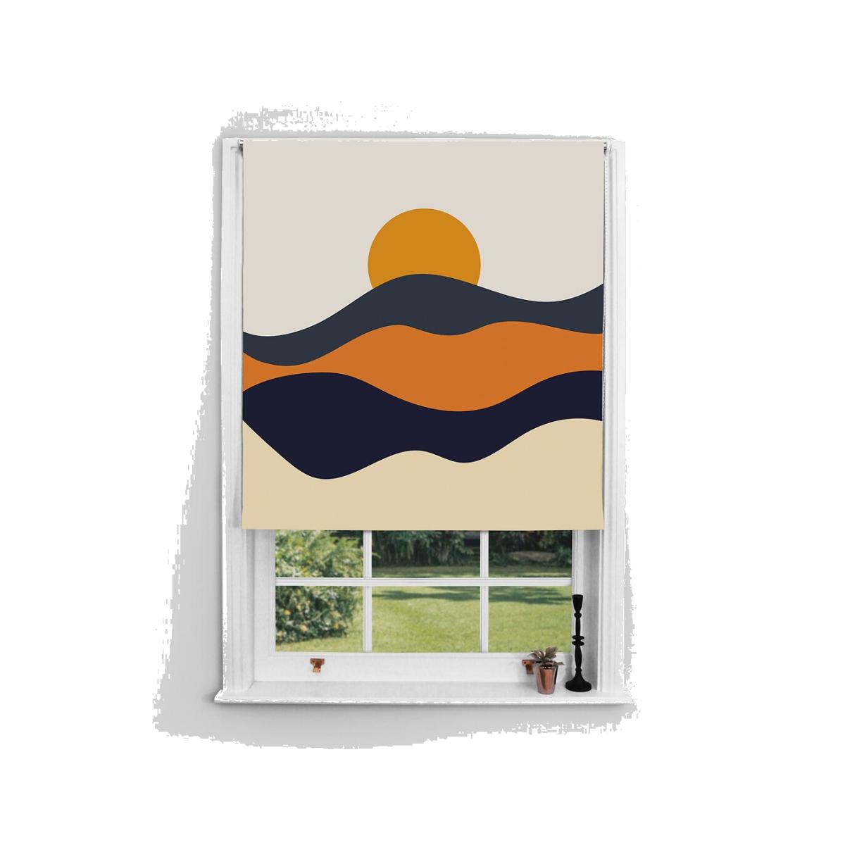 Simple lines and blocks of colour create a stunning artwork of the sun over the waves on this blackout roller blind making your window a talking point. Supplied with all fixings and easy to follow instructions. These products are made to order in the UK, each one will be printed when you place your order. This product will be dispatched by one of our trusted suppliers. You’ll be contacted by their selected courier about your delivery.