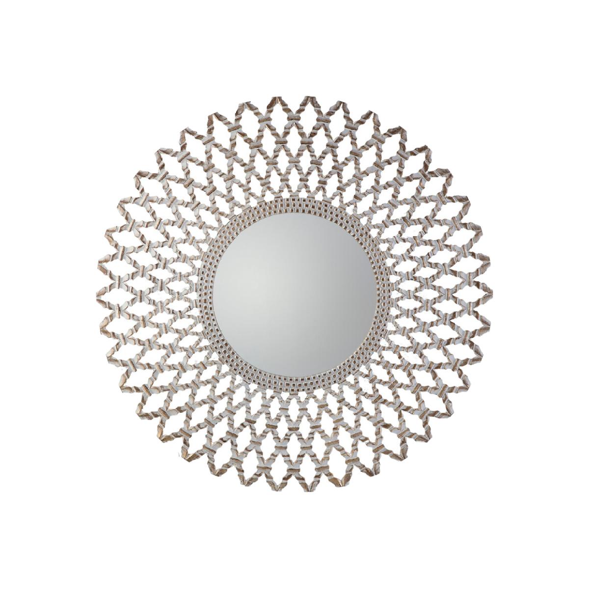 I really like this round wood lattice mirror for its versatile, contemporary look. It works particularly well in boho, coastal, or modern interiors, adding texture and visual interest without overpowering the space. A great styling tip is to position it above a console table or bathroom vanity to create a focal point, or cluster it with other mirrors and art for a layered effect. Its natural wood frame makes it an excellent choice for earthy and neutral colour schemes, and it can be paired with baskets, woven textiles, or greenery to enhance its organic vibe. Overall, it’s a stylish yet practical addition that can elevate various interior styles with its understated charm.