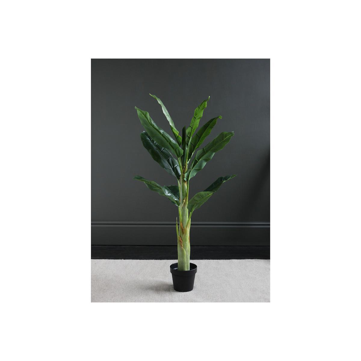 This product will be dispatched by one of our trusted suppliers. You’ll be contacted by their selected courier about your delivery. Enjoy that holiday feeling all year round with this Artificial Banana Palm Tree. With it's lush, large green leaves it will add a touch of the tropics to any corner of your home or office. The tree comes fitted to a standard plastic pot. Pot diameter is 14cm.
