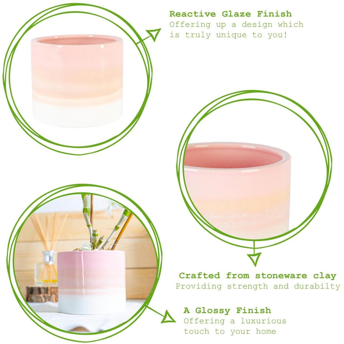 Give your potted plant pursuits the showcase they deserve with our range of Nicola Spring Reactive Glazed Plant Holders. Create one beautifully botanical oasis in your home, with a range of styles, sizes, and colours to choose from! Crafted from stoneware clay, these holders are designed to withstand the rigours of a busy household. Each holder has been carefully hand-glazed, producing a beautiful ombre pattern. This is formed through the process of a chemical reaction during firing, offering up a stunning organic design, with a gorgeous glossy finish, meaning each pot's design may vary and will be truly unique to you! From home-grown herbs to hibiscus, these plant pots will make the ideal home for your earthy endeavours.
