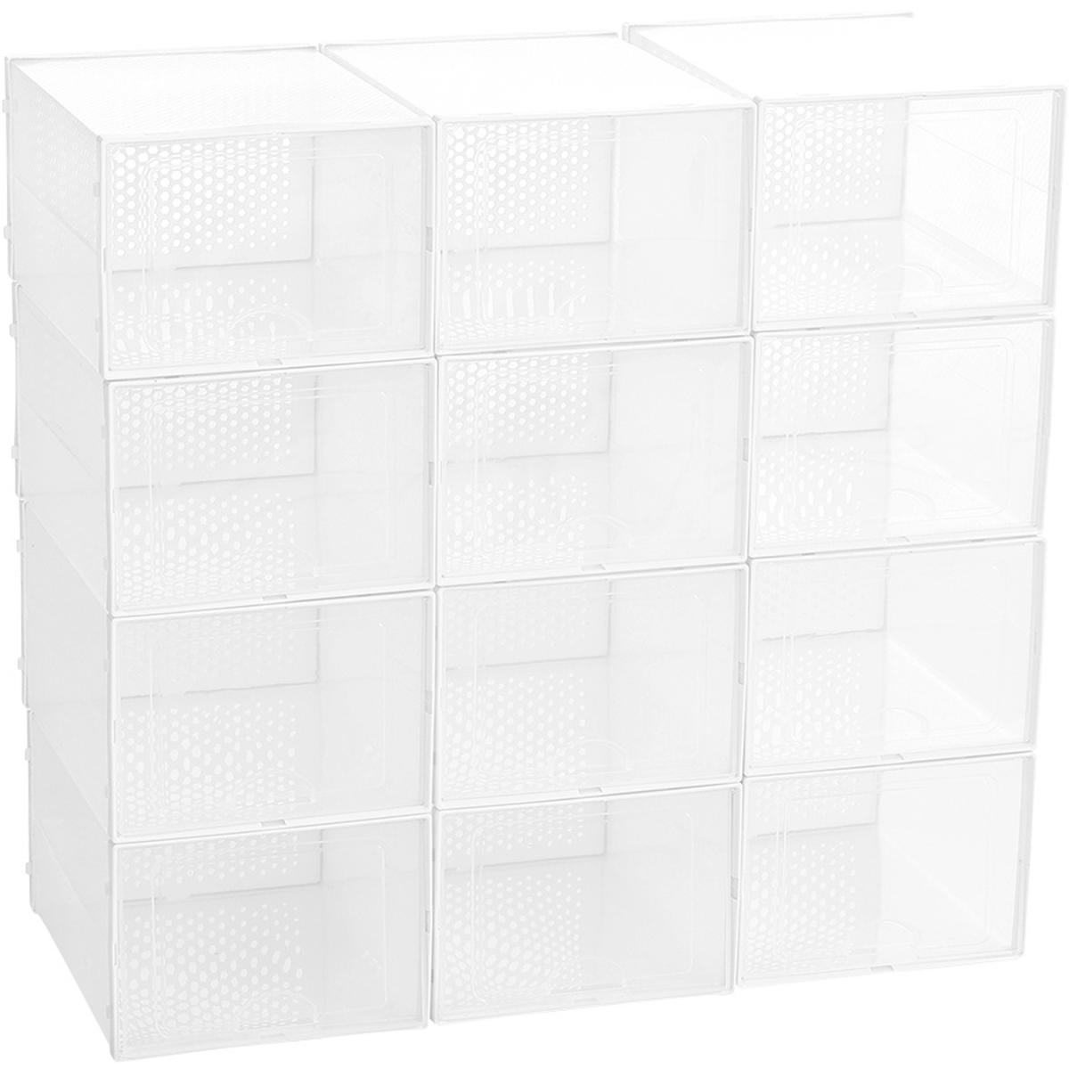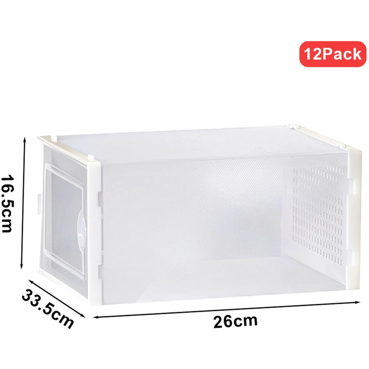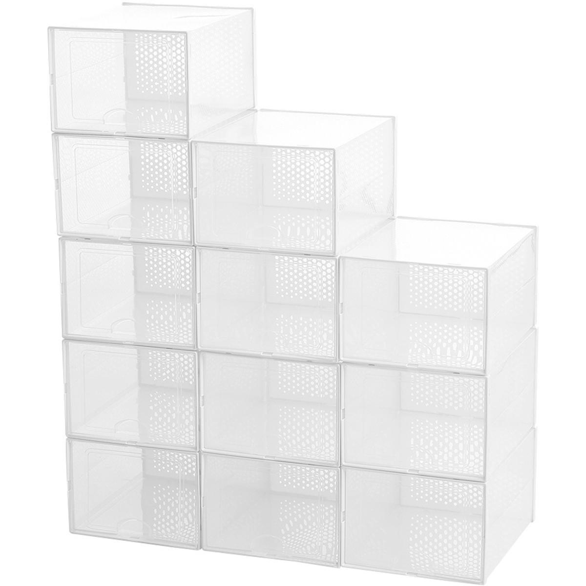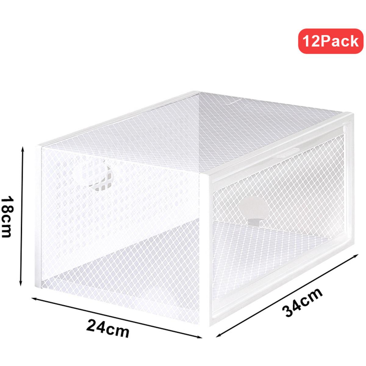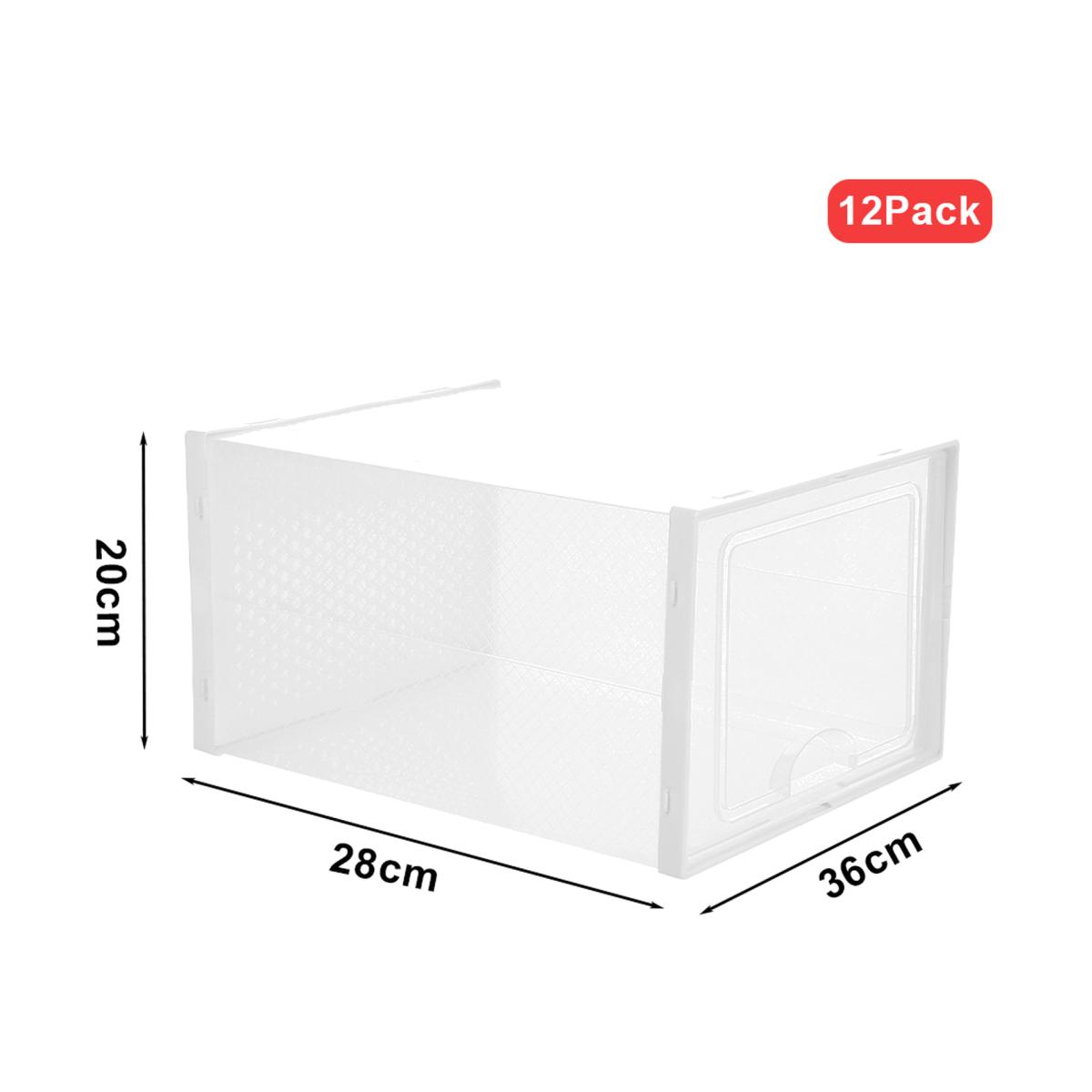12x Clear Stackable Shoe Storage Boxes Plastic - White