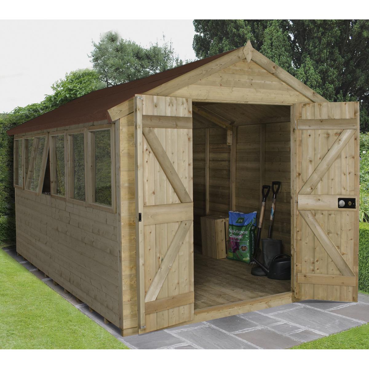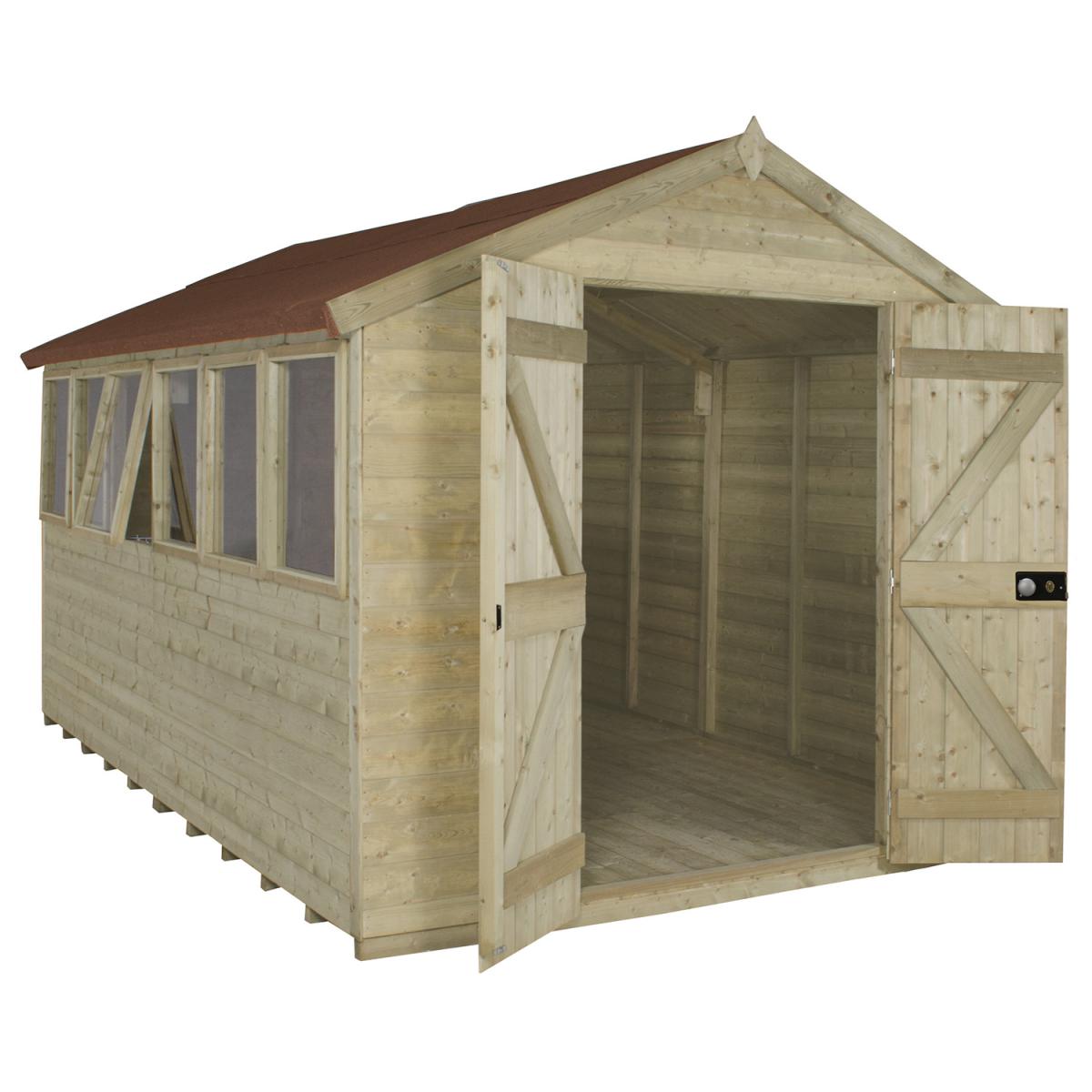 Not only incredibly practical, this fantastic Tongue and Groove Apex Shed will look stunning amongst your garden greenery with its wooden finish and traditional apex roof. Featuring a large door for easy access and a window to allow natural light to flood the building, the shed is perfect for storing all your garden goods, from lawn mowers and patio furniture to wellies and tools. Manufactured from overlapping tongue and groove boards, the tight-fitting nature of this construction material offers greater protection from wind and rain penetration. The strong, fully braced door is fitted with stainless steel hidden hinges, the lock and handle add security with the opening toughened glass windows and the quality stainless steel catches provide extra ventilation. Formed of the highest quality with a robust floor and waterproof roof, this wonderful shed really is the ideal storage solution.