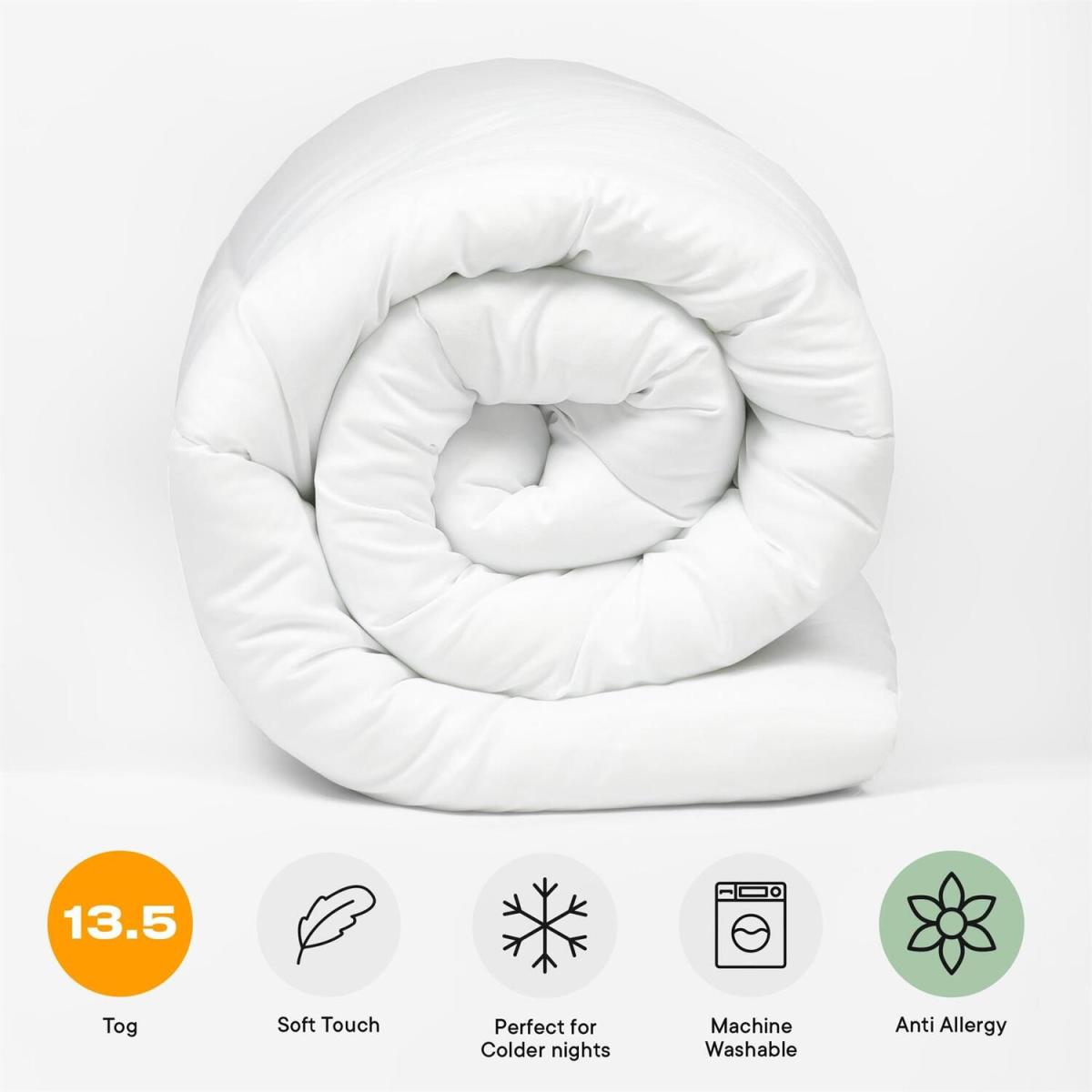 Soft and cosy for unbeatable comfort. This duvet is filled with anti-bacterial hollowfibre that actively protects against bacteria and dust mites, keeping your duvet fresh and hygienic for longer. Helps to reduce and remove allergens so that you to enjoy a restful nights sleep. We provide TOGs from 4.5 which is cool and lightweight perfect for the summer months, through to the 15 TOG which is perfect for the cold winter months. Choosing the right duvet is important to allow for a great nights sleep all year round. Our duvets are also easy care so can be machine washed, and are all UK made.