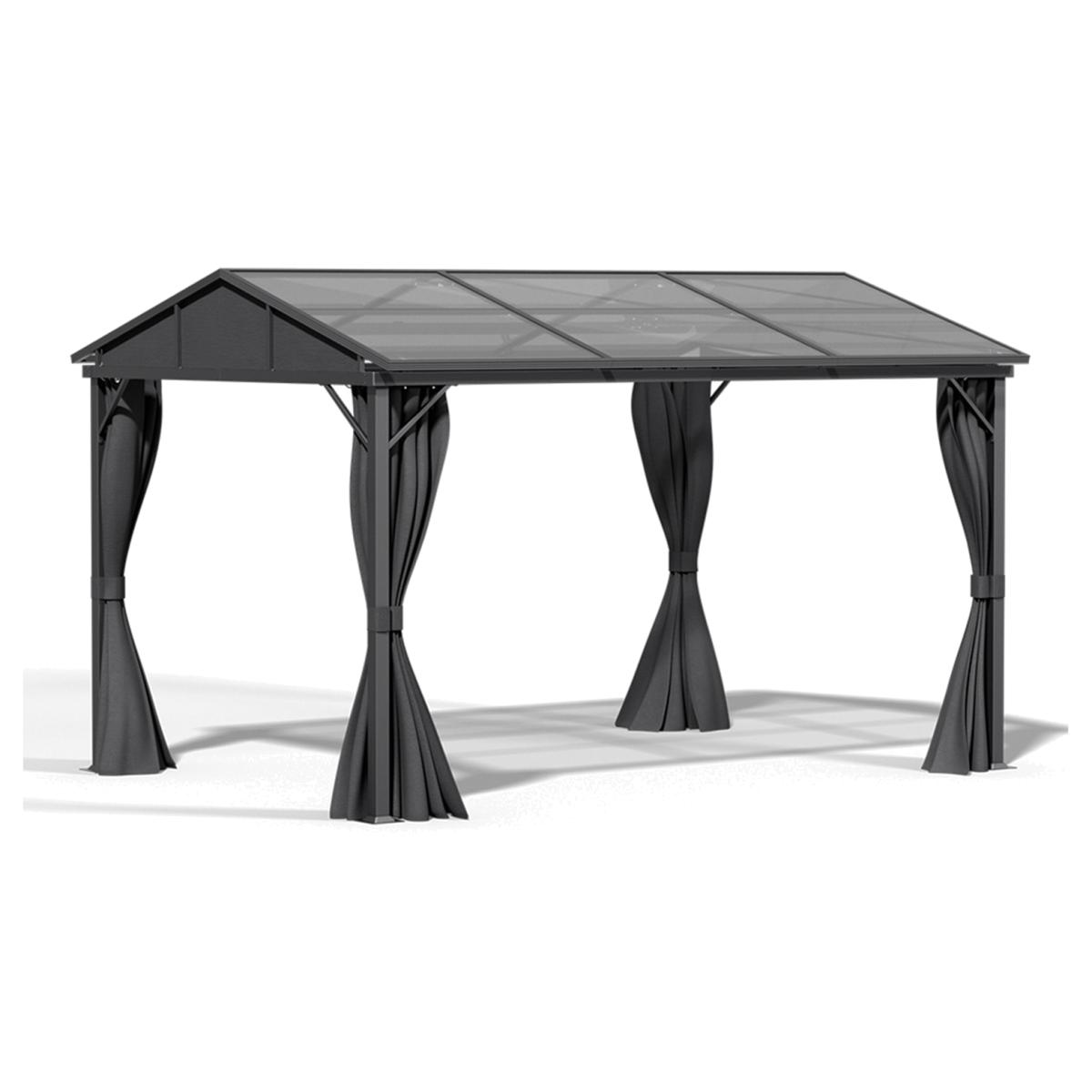 13 x 10FT Metal Frame Hardtop Garden Gazebo with Curtains - Dark Grey