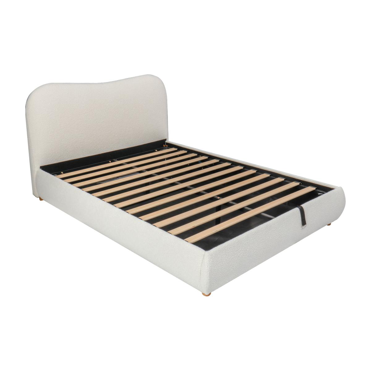 The unique curved headboard is not only a visual highlight in your bedroom but also ergonomically designed to support your neck and back naturally. It offers unparalleled comfort for reading or relaxing, instantly elevating your spaces style. Soft and exquisitely boucle fabric. Indulge in the luxurious embrace of our sumptuously soft and exquisitely boucle. This fabric promises not only unparalleled comfort but also an elegant touch that transforms any space into a haven of sophistication and warmth. Innovative mattress-in construction ensures your mattress stays securely in place without slipping. It not only keeps the bed neat but also enhances sleeping comfort, letting you say goodbye to mattress displacement. With its off-white hue and clean lines, this bed perfectly complements Wabi-Sabi, modern, and other British home styles. It adds a touch of elegance and sophistication to any bedroom. Enjoy the marriage of efficiency and convenience. All components and tools are cleverly packaged together. Comes with clear instructions, all the pieces are clearly labeled, 2 adults can finish within 40 minutes.