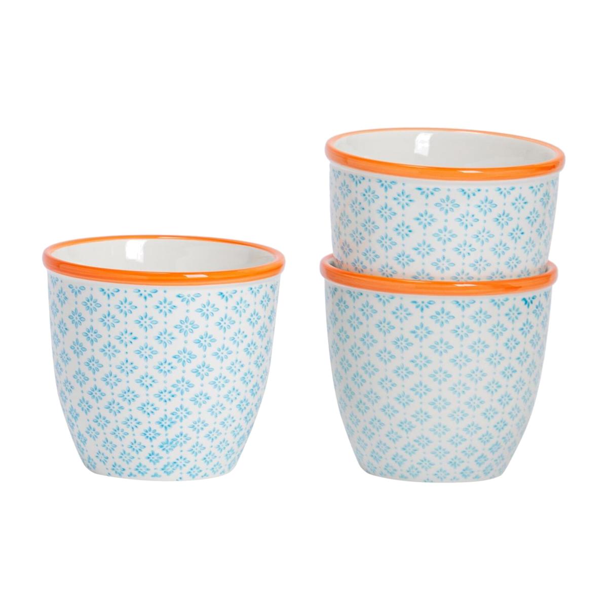 14cm Hand-Printed Plant Pot Pack of 3 - Blue