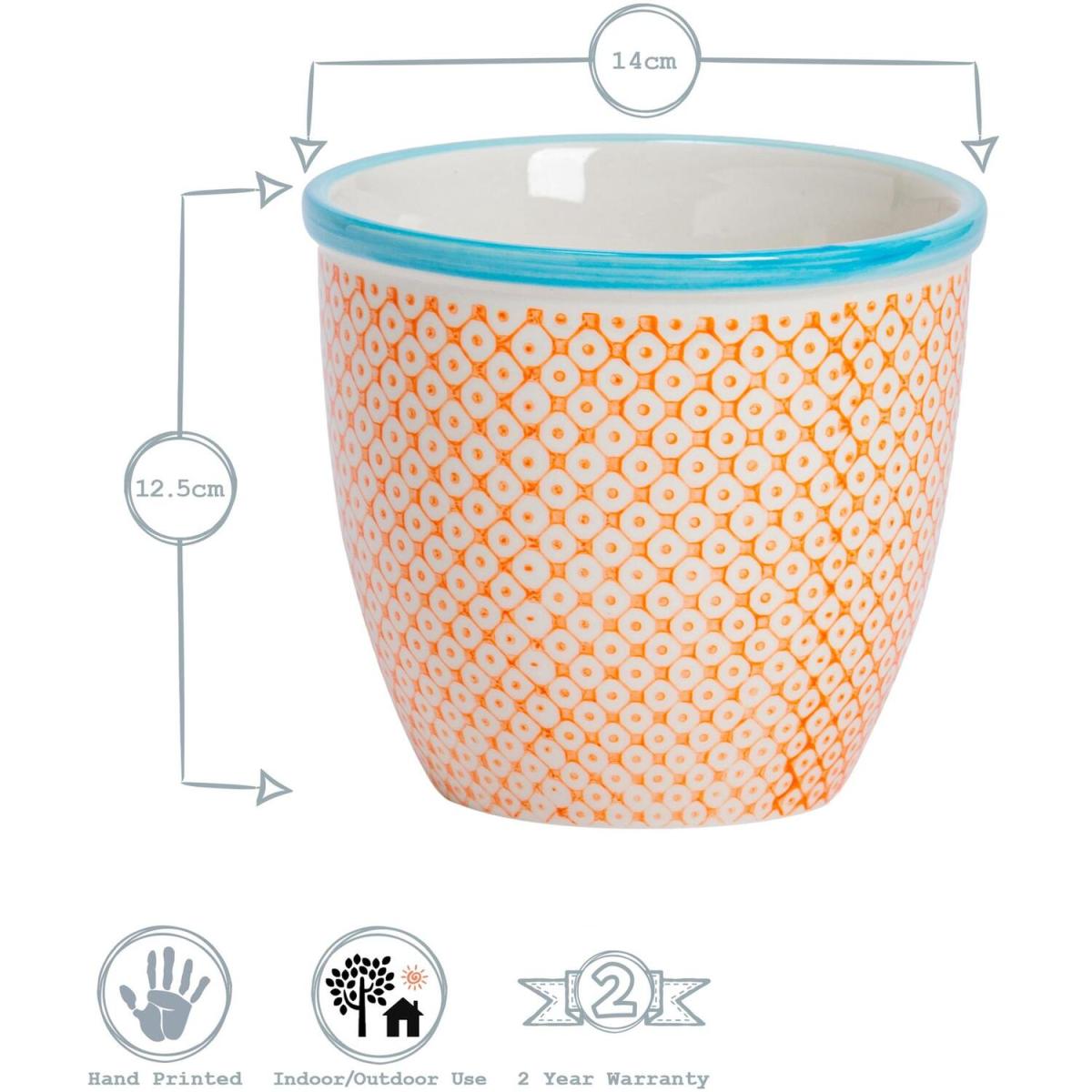 14cm Hand-Printed Plant Pot Pack of 3 - Orange