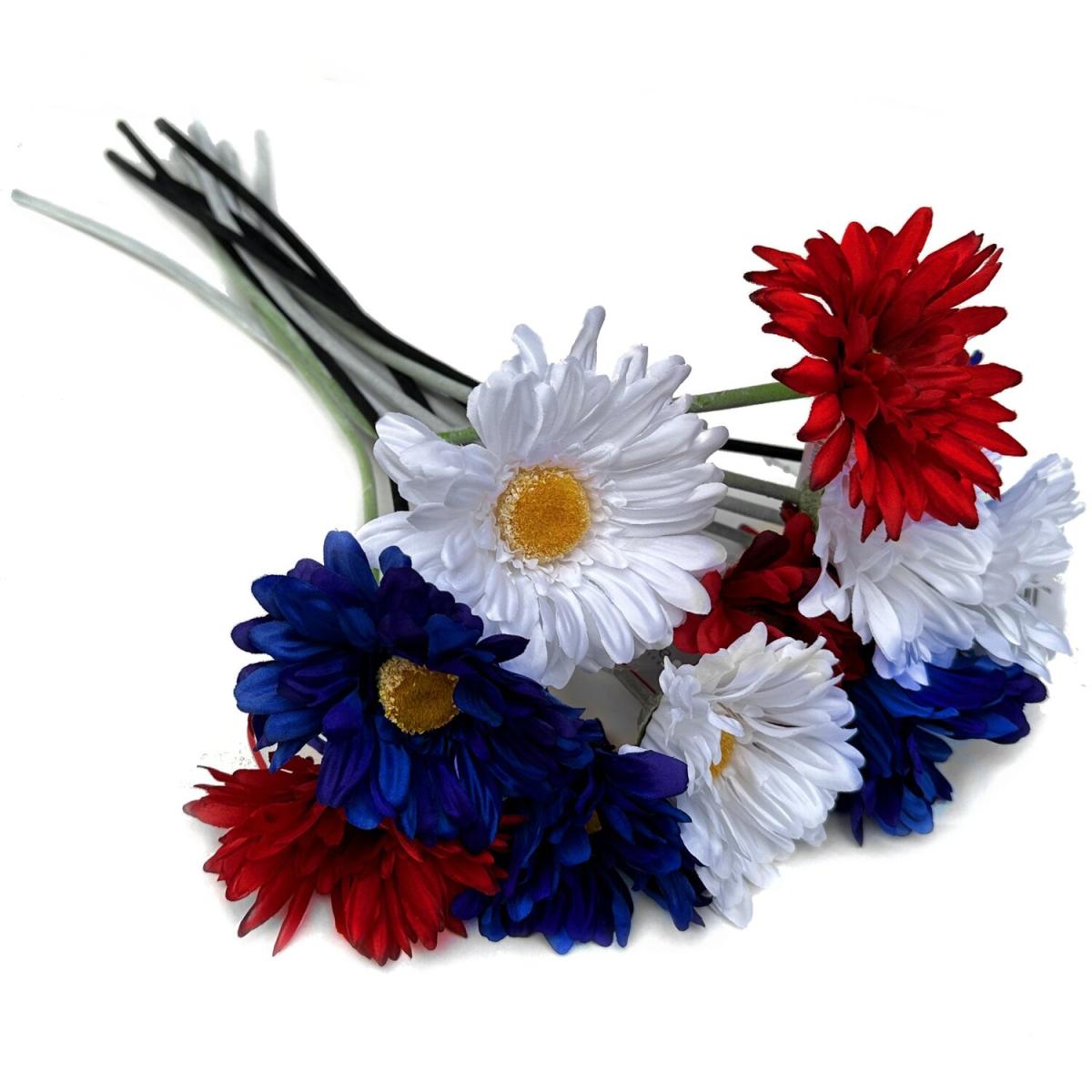 15 Artificial Gerbera Flower Stems Red White and Blue - Red White and Bliue